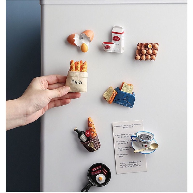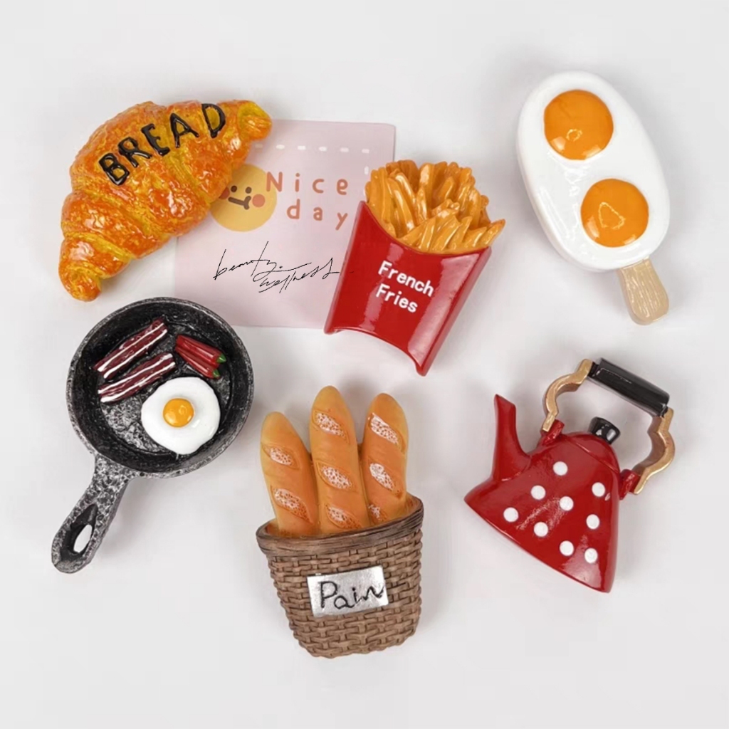 ?จัดส่งไว?แม่เหล็กติดตู้เย็นรูปอาหารเช้าและขนมปัง