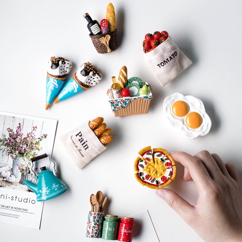?️[Home] แม่เหล็กติดตู้เย็น ??? ที่ติดตู้เย็น 3D สําหรับติดตกแต่งตู้เย็น Ins ไวท์บอร์ด Diy เรซิ่นอาหารจําลองน่ารัก