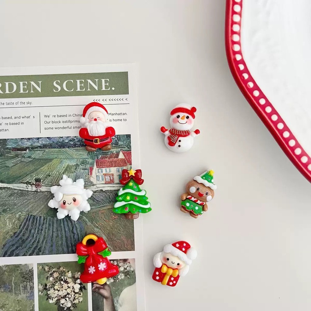 [H&L]5/10/20 ชิ้นสติ๊กเกอร์ติดตู้เย็นคริสต์มาส | ของตกแต่งงานฝีมือ DIY การ์ตูน | ต้นคริสต์มาสซานตาคลอสเรซิ่น | ตกแต่งสําหรับเคสโทรศัพท์และโครงการงานรื่นเริง