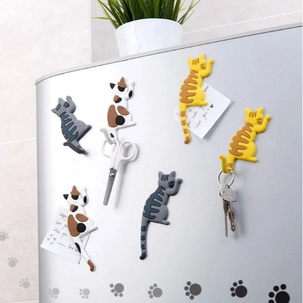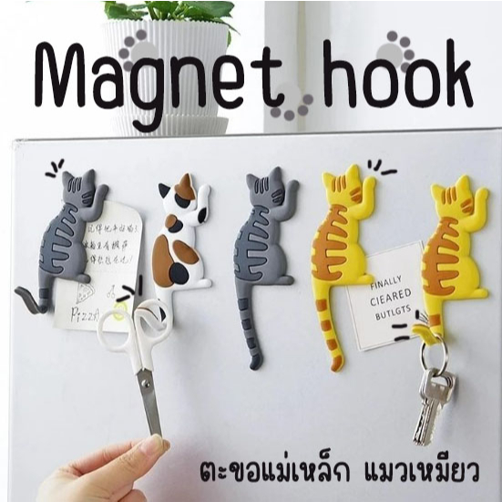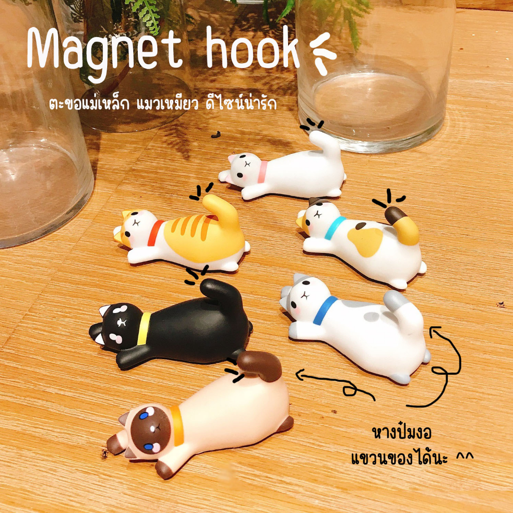 ? แม่เหล็กติดตู้เย็น รูปแมว หางงอได้ใช้เป็นตะขอเกี่ยวแขวนสิ่งของได้ แม่เหล็กติดตู้เย็นน่ารัก Magnet ?