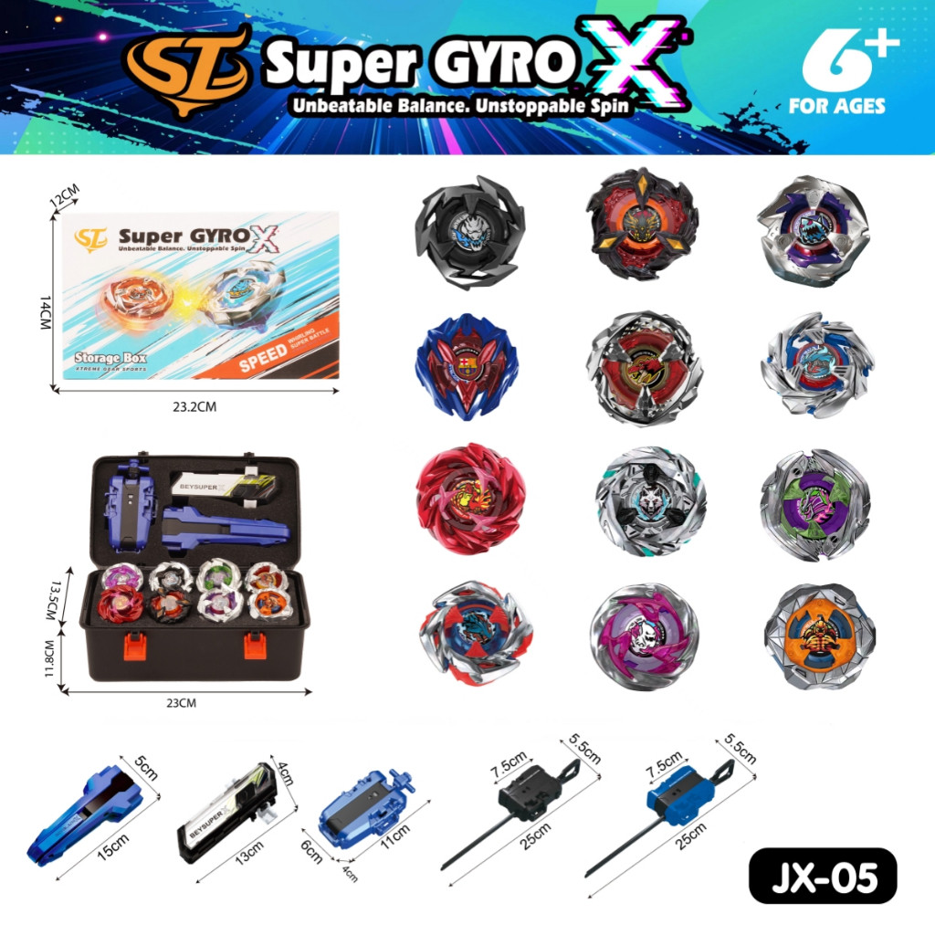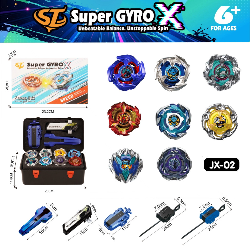 Super GYRO X ลูกข่างต่อสู้โลหะ Combo Top 8 ชิ้น หมุนแรง พร้อมกล่องเก็บ Battle Top ของเล่นเด็กผู้ชาย ของขวัญเด็ก พร้อมส่ง