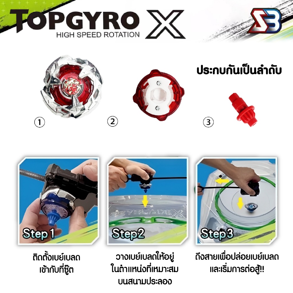 TOPGYRO X BX UX CX ลูกข่างเซ็ตกล่องรุ่นใหม่ ภายในเซ็ตประกอบด้วย ลูกข่าง3ลูก ด้ามจับ1ด้าม ชูทเส้น1อัน ชูทสาย1อัน พร้อมส่ง