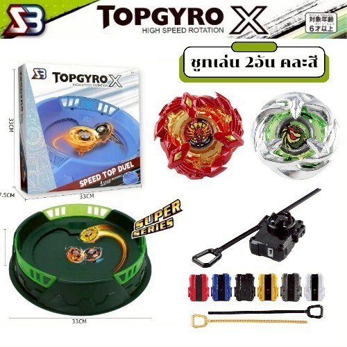เซ็ตลูกข่าง TOPGYRO X UX เซ็ตลูกข่างพร้อมสนามแข่ง พร้อมลูกข่าง 2 ลูก และชูทเล่น 2 อัน และสนาม 1 ชิ้น ขนาดฝึกหัดเล่น
