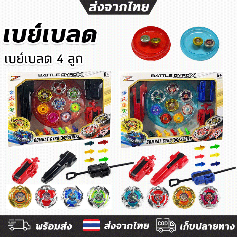 เบย์เบลด +สนามเบย์เบลด 1เซ็ตได้เบย์เบลด 4 ลูก สนามสีฟ้า/สีแดง สตาร์ทเตอร์ ลูกข่างหมุน ชุดลูกข่าง มีให้เลือกลายเเบบ