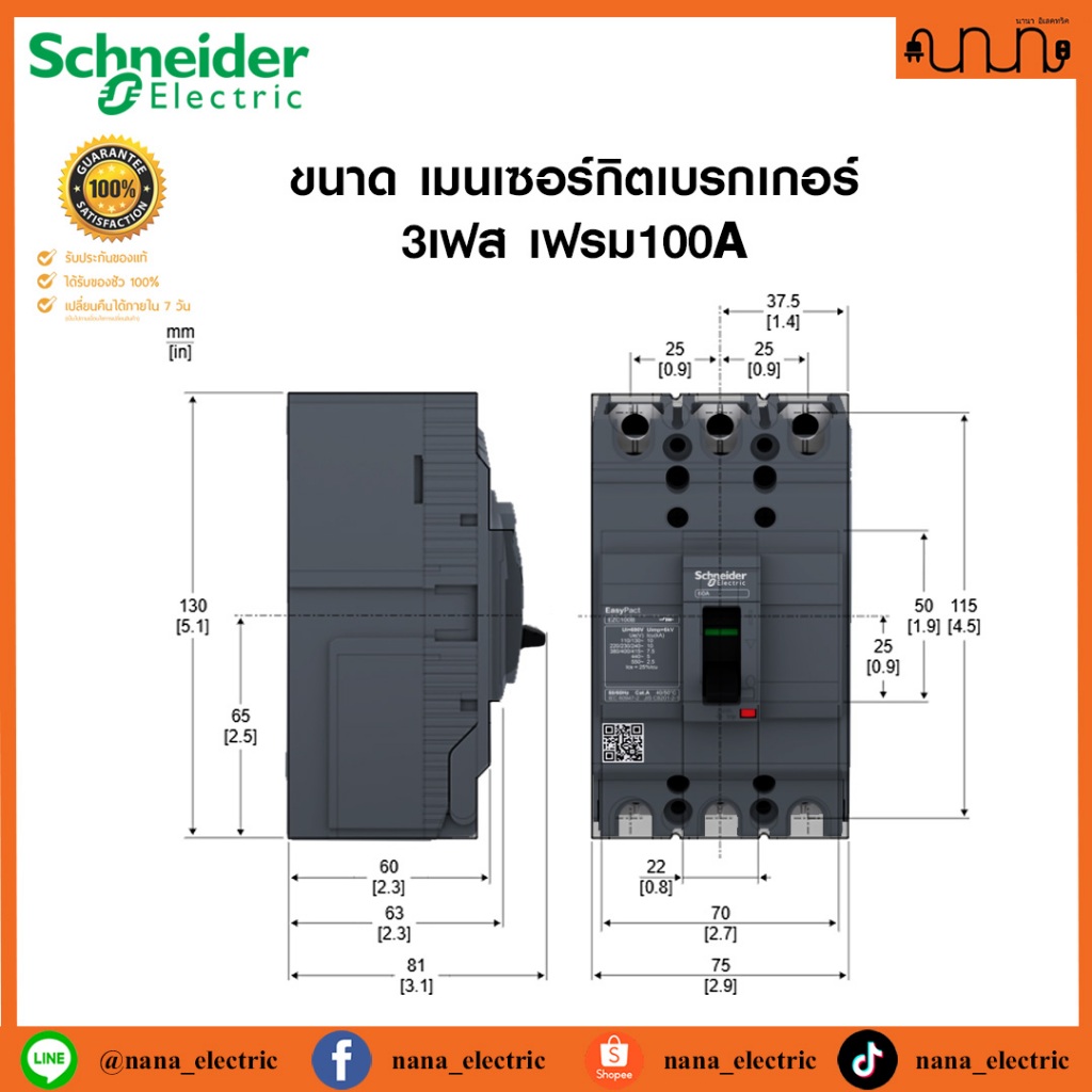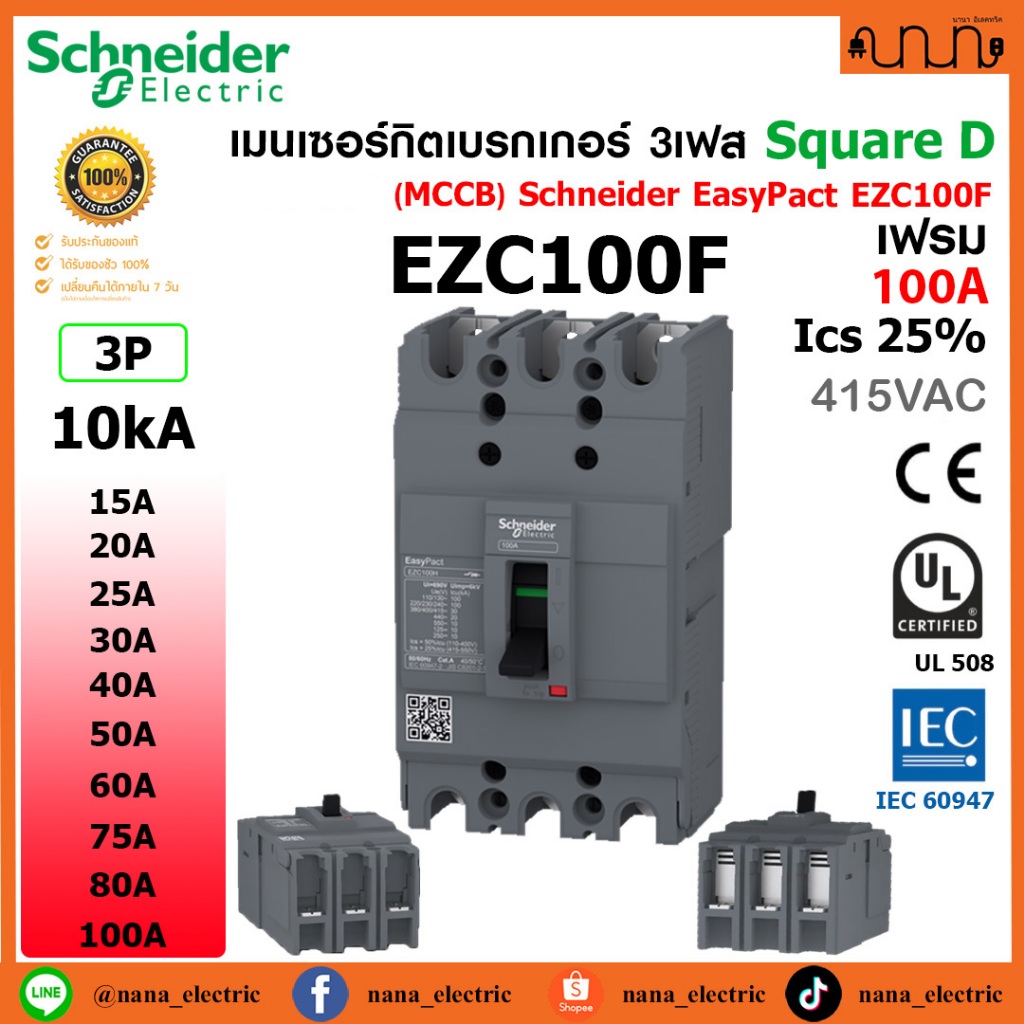 [10kA] เมนเซอร์กิตเบรกเกอร์ 3เฟส เฟรม100A (MCCB) Schneider EasyPact EZC100F