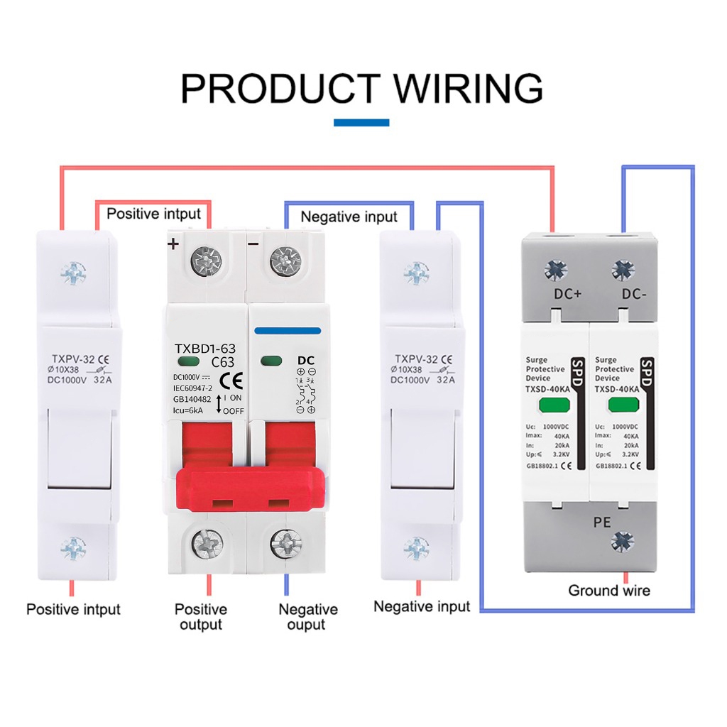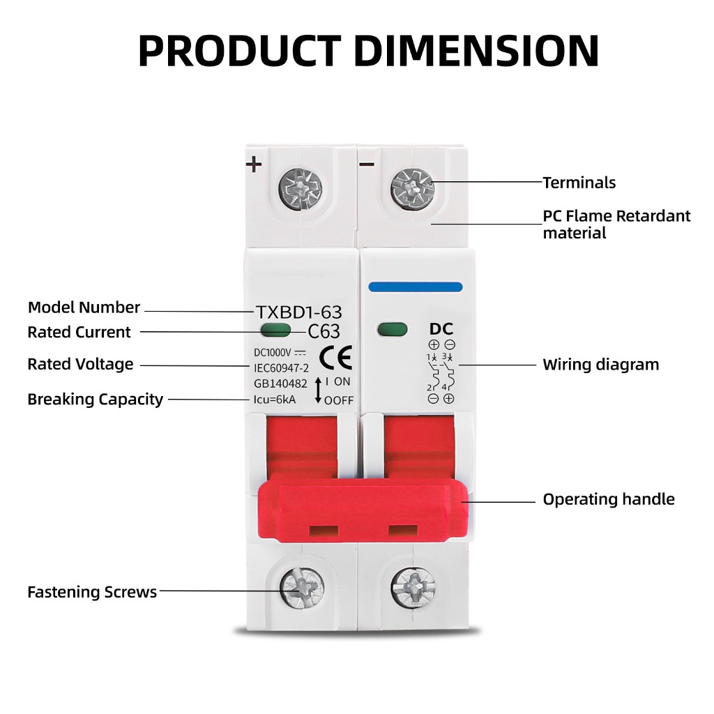 ? สวิตช์แบตเตอรี่เบรกเกอร์ 2P DC MCB 1000V AC 400V 63A สำหรับระบบ Photovoltaic PV พลังงานแสงอาทิตย์