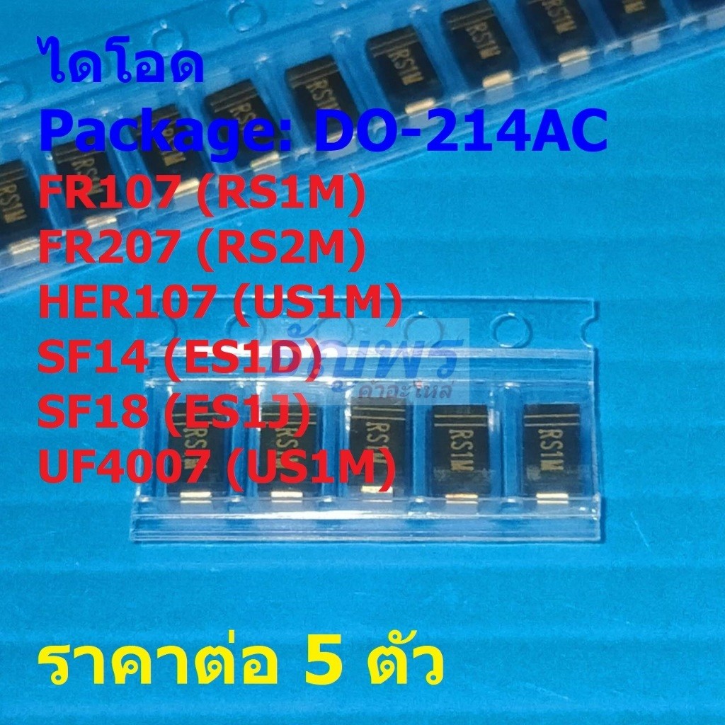 (5 ตัว) ไดโอด Fast Recovery Rectifier Diode FR107 RS1M RS2M US1M SF14 ES1D SF18 ES1J #DO-214AC