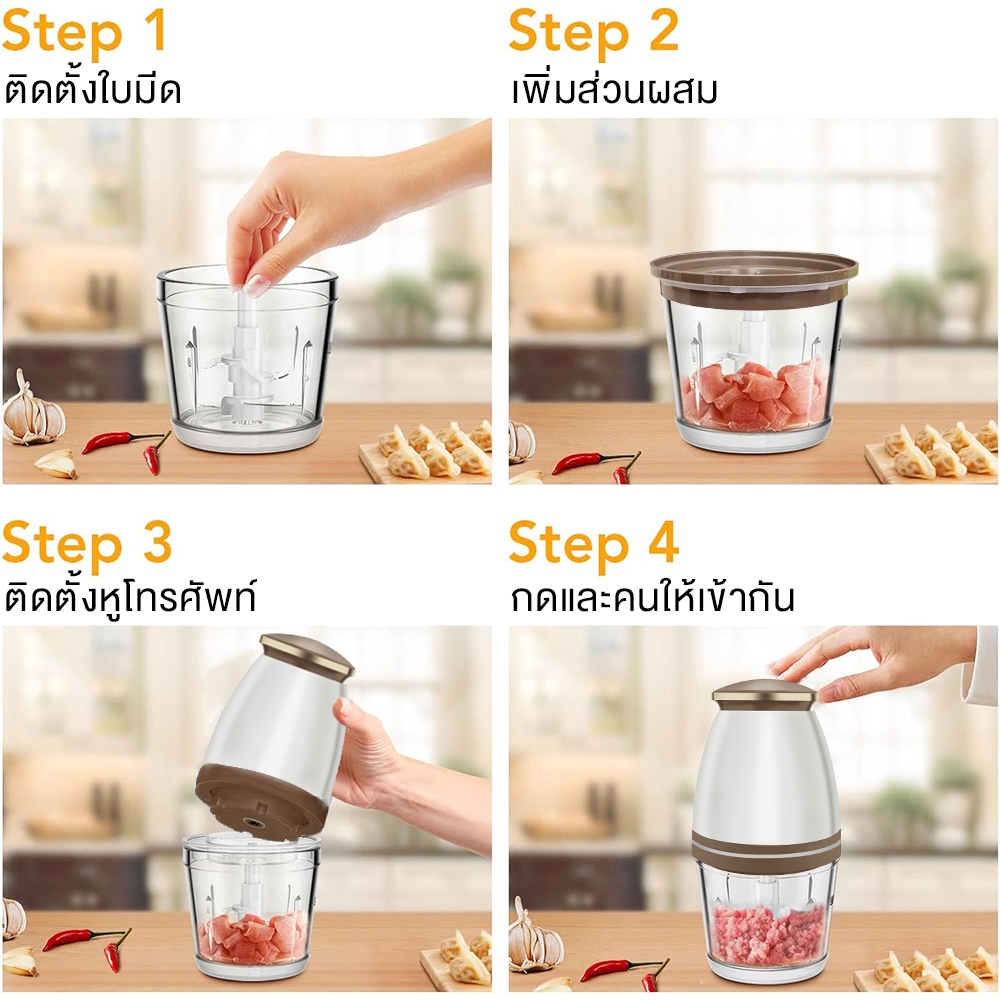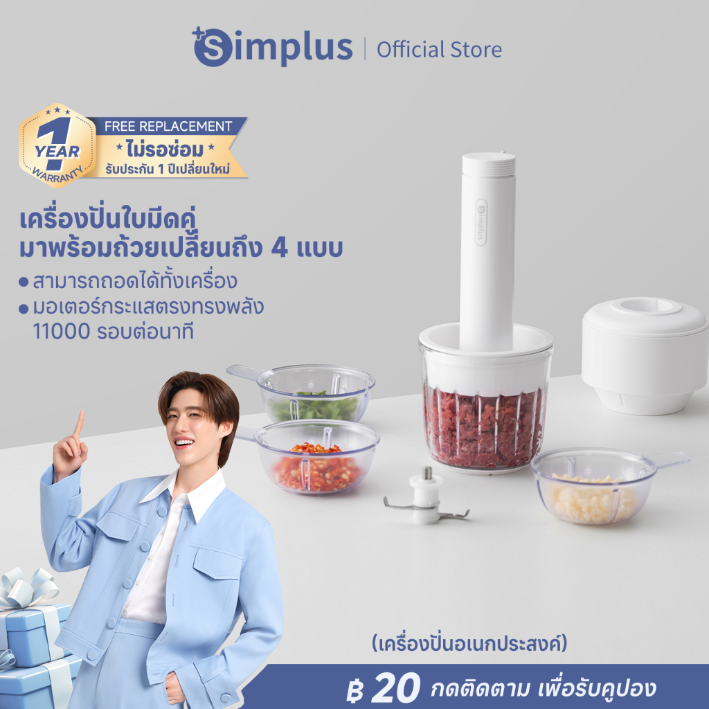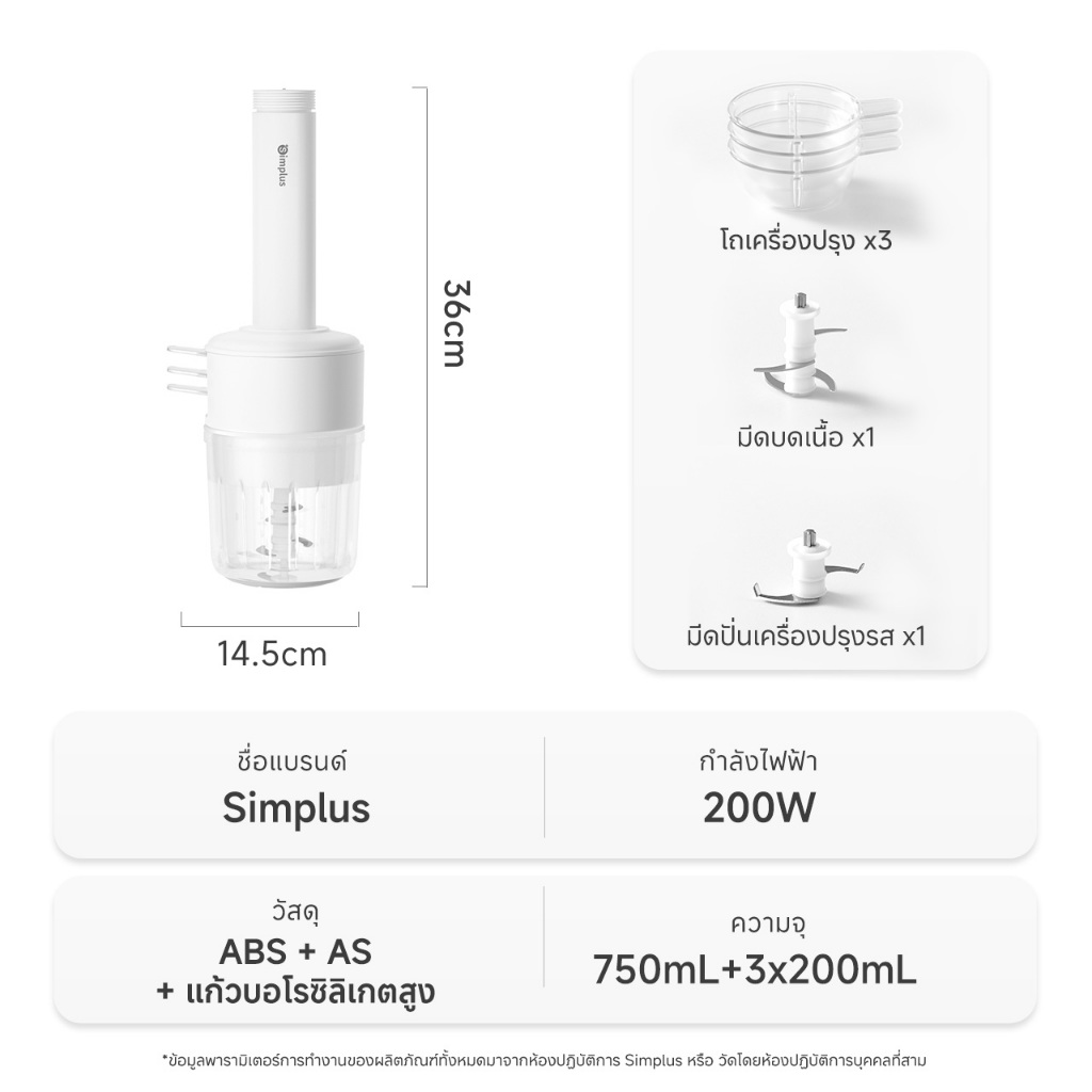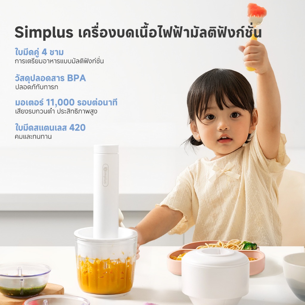 Simplus เครื่องบดเนื้อ เครื่องผสมอาหารไฟฟ้า ใช้ในครัวเรือน เครื่องเตรียมอาหารอเนกประสงค์ เครื่องบดสับผัก DDJR006