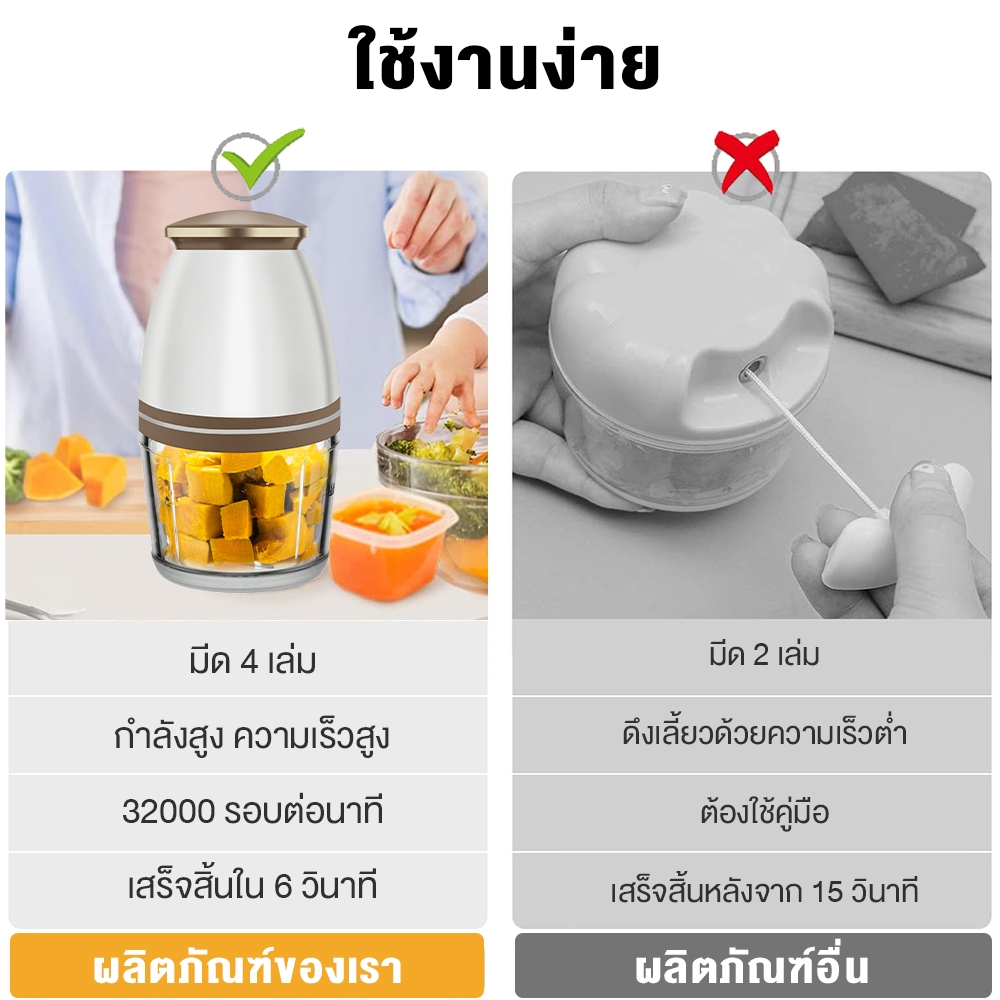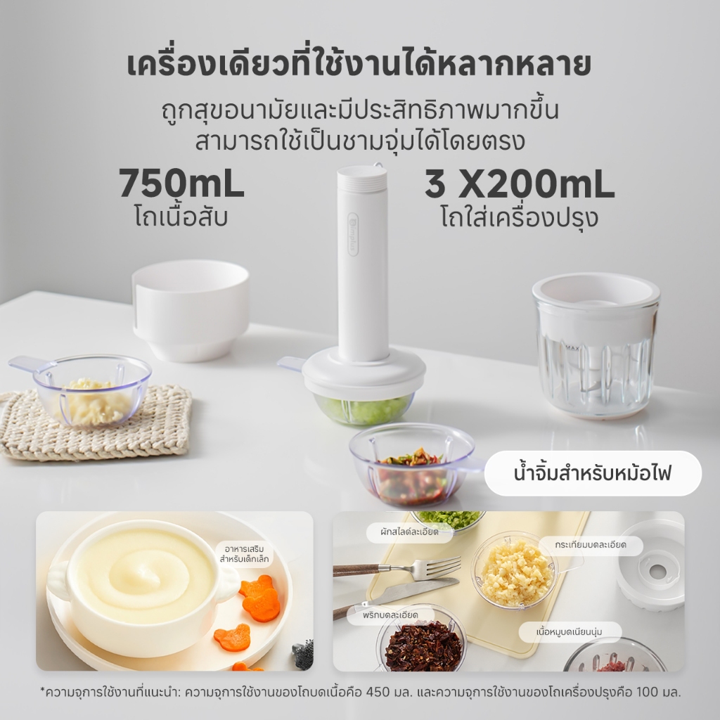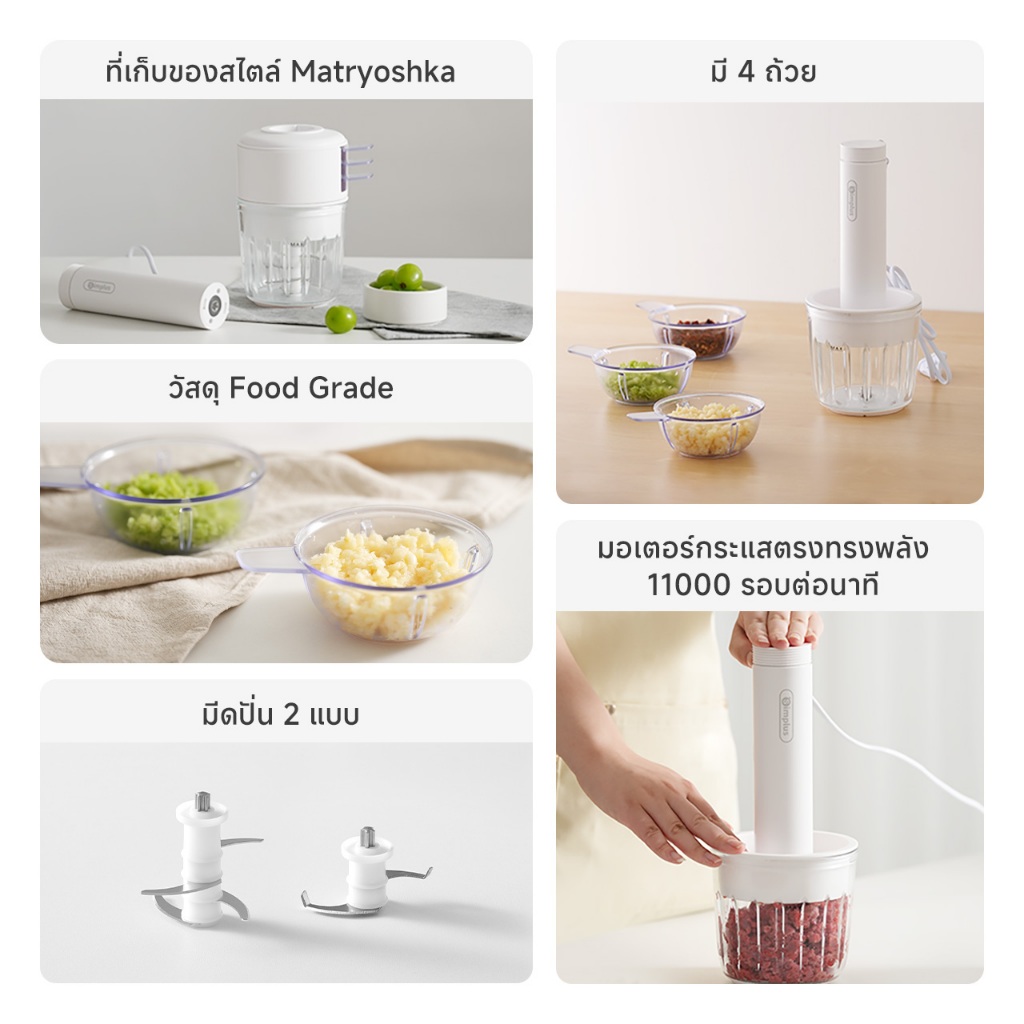 Yooha เครื่องปั่นอาหารเด็ก เครื่องปั่นกระเทียม 304 ทำความสะอาดง่าย เครื่องบดอาหาร เครื่องปั่น การทำงานด้วยปุ่มเดียว