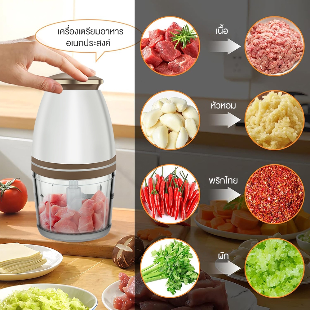 ชุดตัดผักไฟฟ้า เครื่องปั่น พริก กระเทียม มินิ บด สับอาหารแบบไร้สาย ขนาดมินิ ใช้งานสะดวก