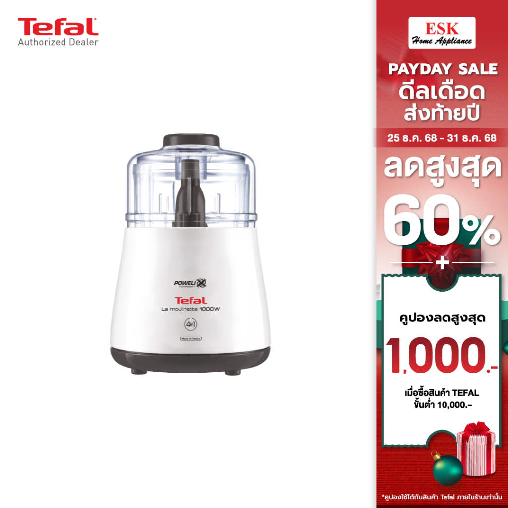 TEFAL เครื่องบดสับอาหาร MB520138 ปั่นเนื้อ ปั่นพริก บดหมู บดไก่ ปั่นกระเทียม ปั่นหอม ผสมอาหาร 4 ใบมีด
