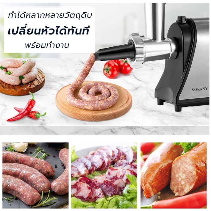 เครื่องบดเนื้อทำไส้กรอกSOKANYเครื่องบด กำลังสูง 3200W บดเนื้อทำใส้กรอก เนื้อบดอย่างรวดเร็ว เครื่องบดเนื้อ เครื่องบดหมู