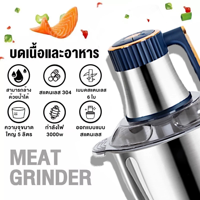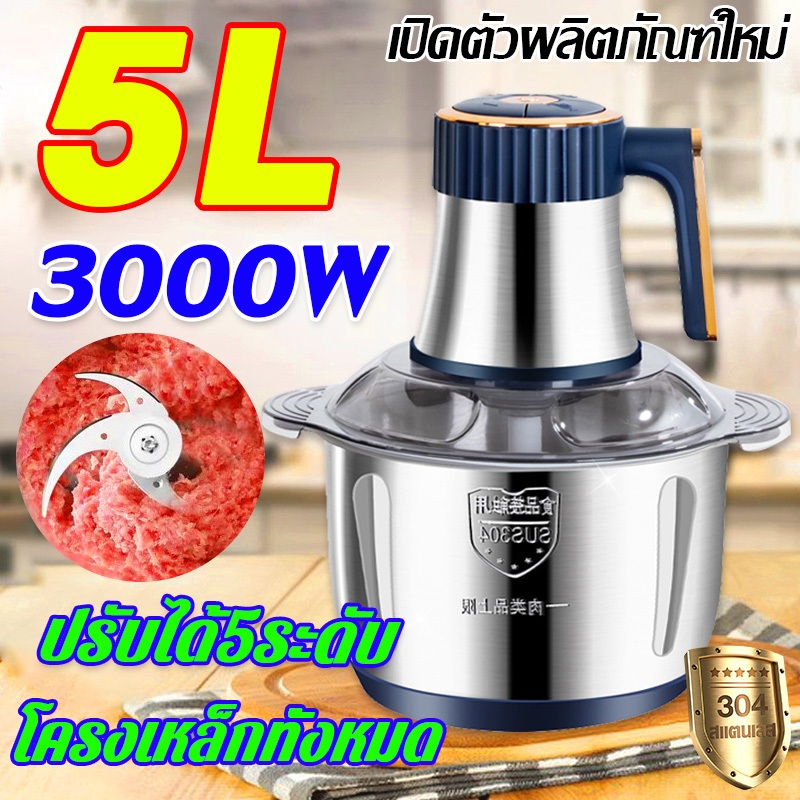 เครื่องบดหมู 5L ใบมีด 6 ใบ ปรับได้5เกียร์ สแตนเลส304 ถอดประกอบและทําความสะอาดง่าย เครื่องปั่นพริก เครื่องบดเนื้อ