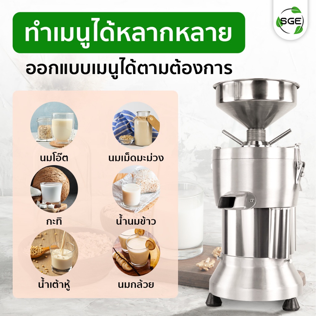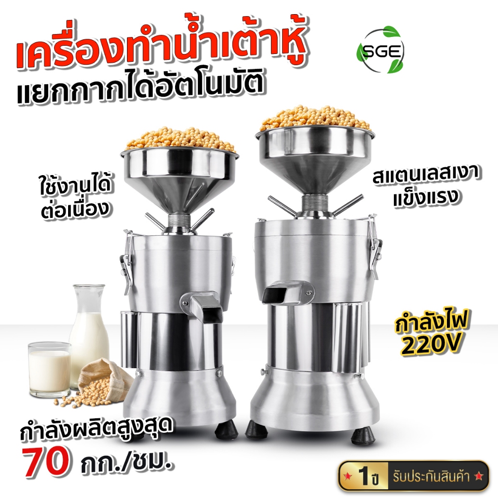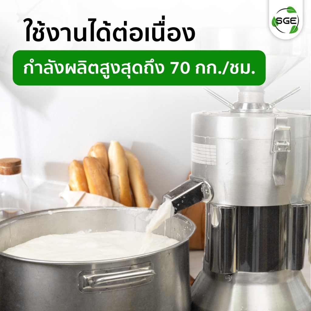 SGE เครื่องทำน้ำเต้าหู้ นมถั่วเหลือง รุ่น SMI วัสดุสแตนเลส กำลังผลิต 70 กก./ชม พร้อมระบบแยกกาก