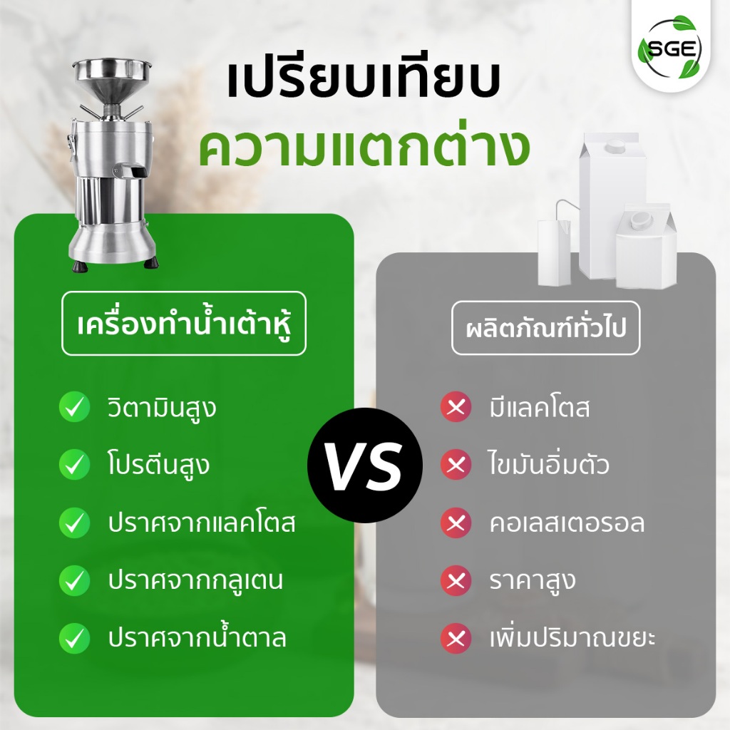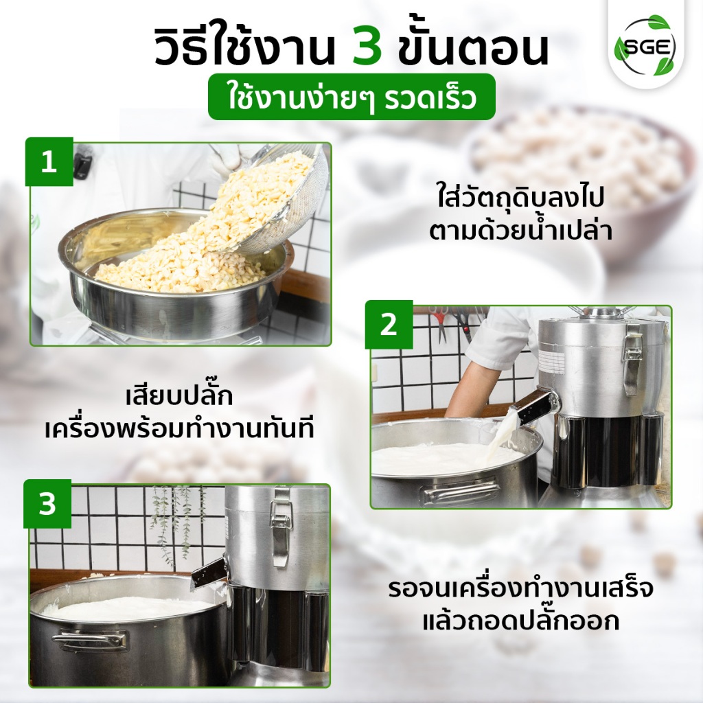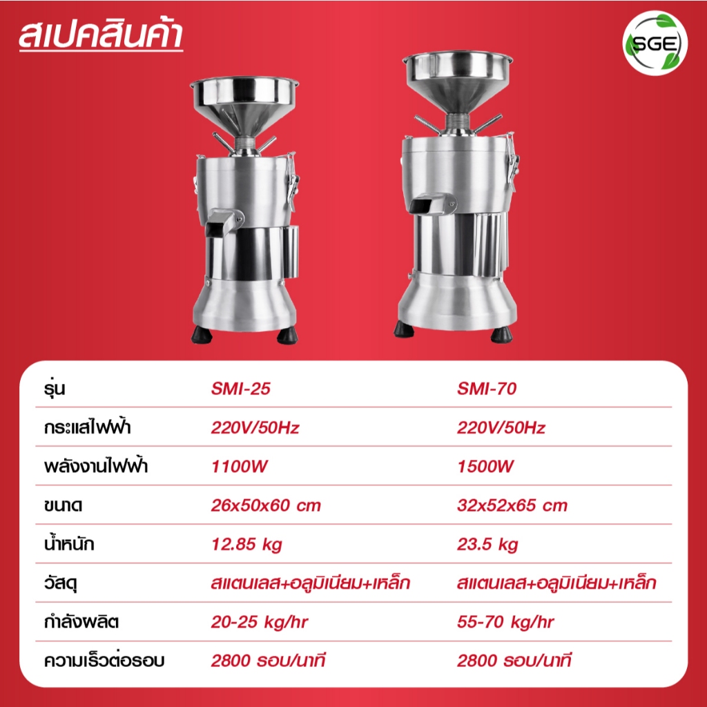 SGE เครื่องทำน้ำเต้าหู้ นมถั่วเหลือง รุ่น SMI วัสดุสแตนเลส กำลังผลิต 70 กก./ชม พร้อมระบบแยกกาก
