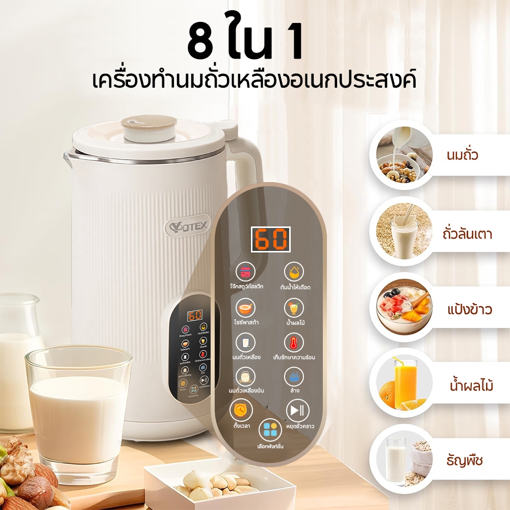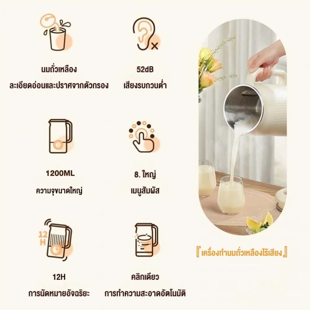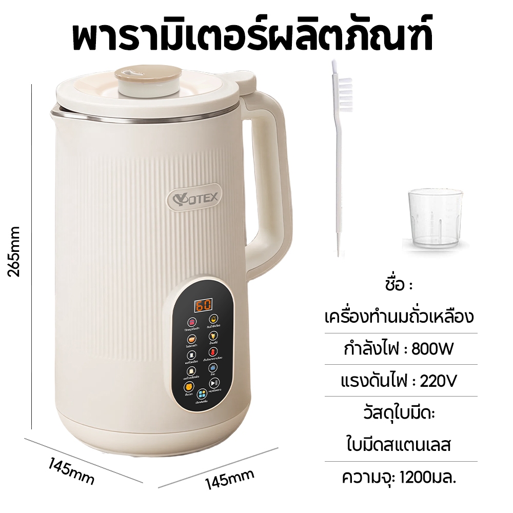 Yotex เครื่องทำนมถั่วเหลือง เครื่องปั่นน้ำธัญพืช ดีต่อสุขภาพ สามารถทำอาหารเหลว เครื่องปั่นอเนกประสงค์ 1200มล