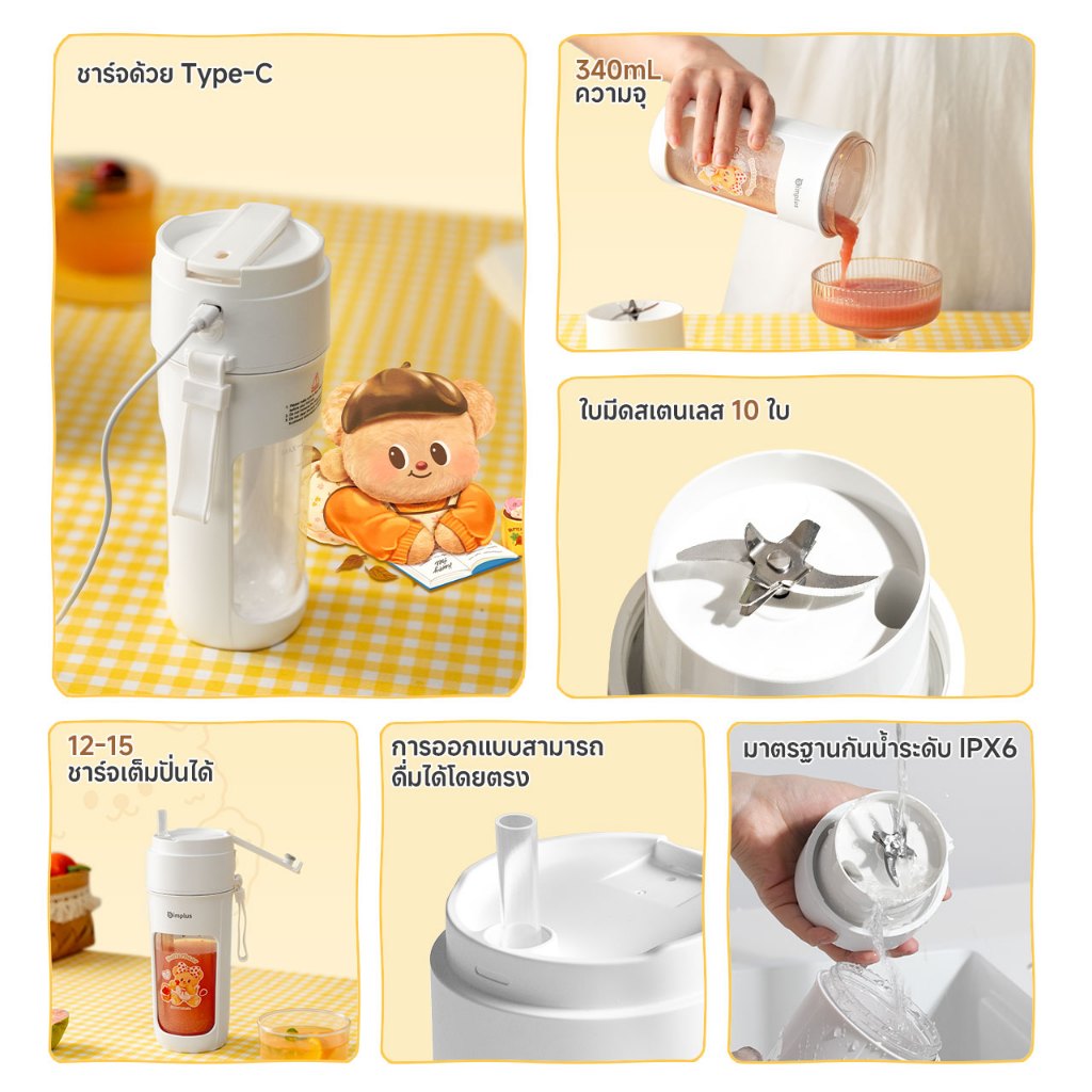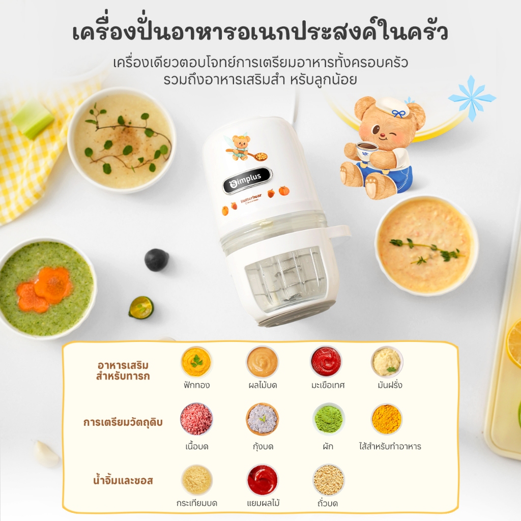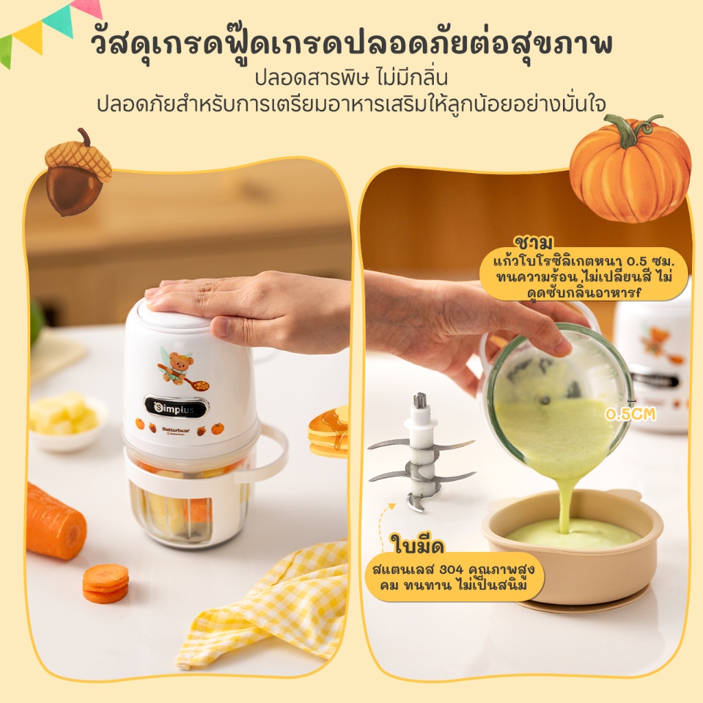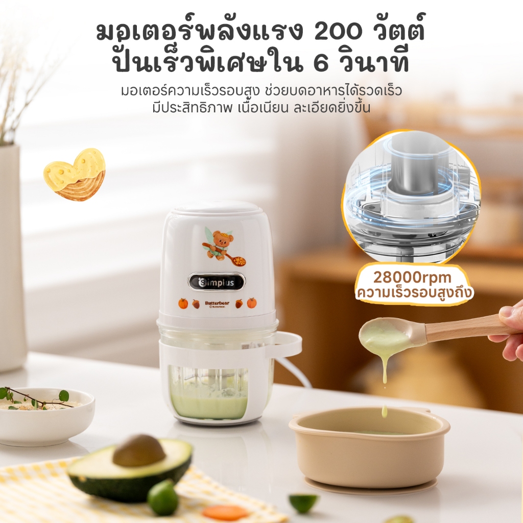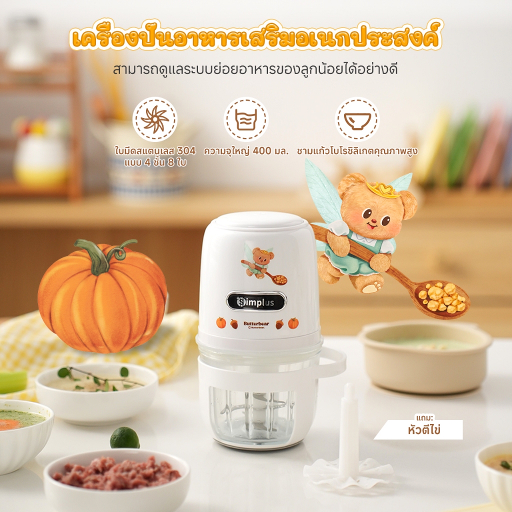Simplus×Butterbear เครื่องปั่นอาหารเสริมสำหรับทารก ความจุ 400 มล. ขนาดเล็กอเนกประสงค์ DDJR005BB
