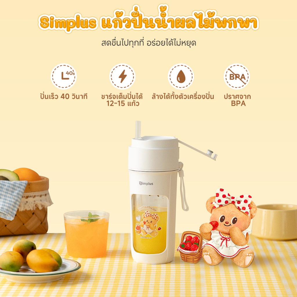 Simplus x Butterbear เครื่องปั่นน้ำผลไม้ แก้วปั่นน้ำผลไม้ไร้สาย แบบพกพาสะดวก ขนาดความจุ 340 มล. ZZJH008BB