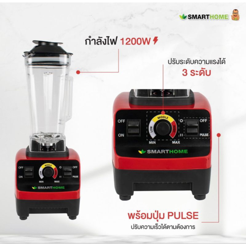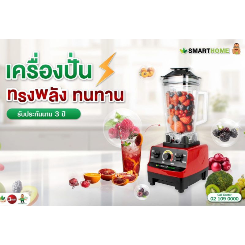 SMART HOME Blender เครื่องปั่น 2 in 1 ความจุ1.5ลิตร รุ่น BD-1510 รับประกัน 3 ปี