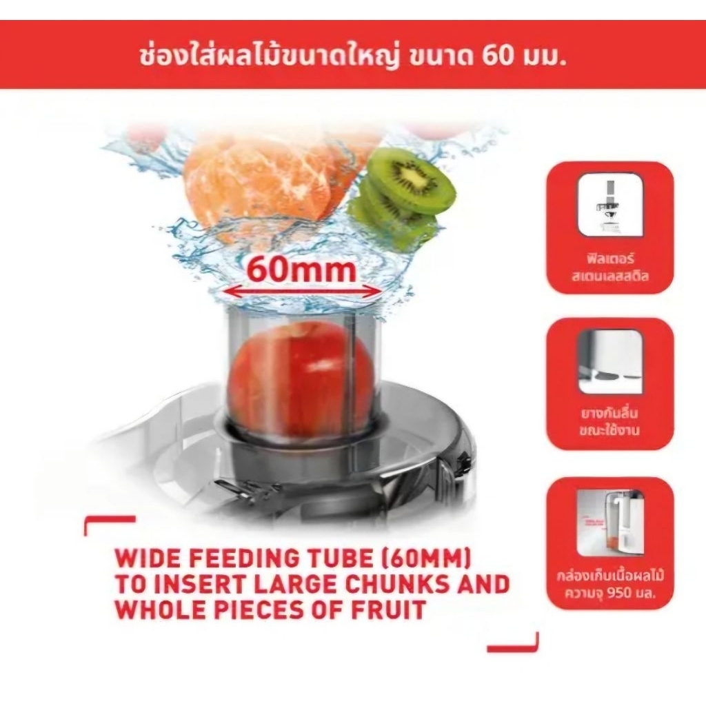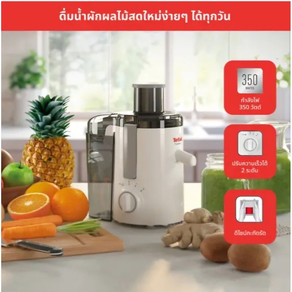 Tefal เครื่องสกัดน้ำผักและผลไม้ FRUTELIA กำลังไฟ 350 วัตต์ความจุ 0.95 ลิตรรุ่น ZE370138