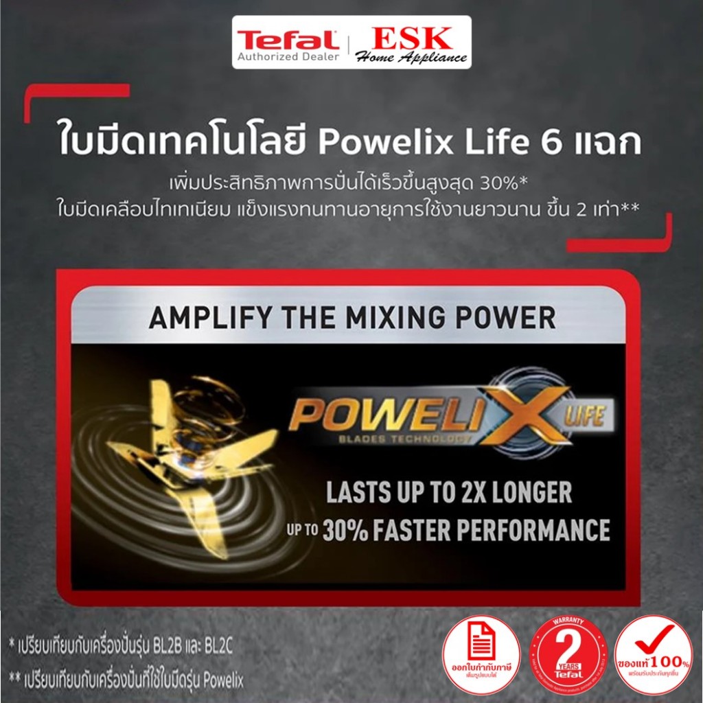 Tefal เครื่องปั่นพลังงานสูง รุ่น BL88A831 BL88 BL88A กำลังไฟ 1200 วัตต์ ความจุ 2 ลิตร (รับประกันศูนย์ 2 ปี)