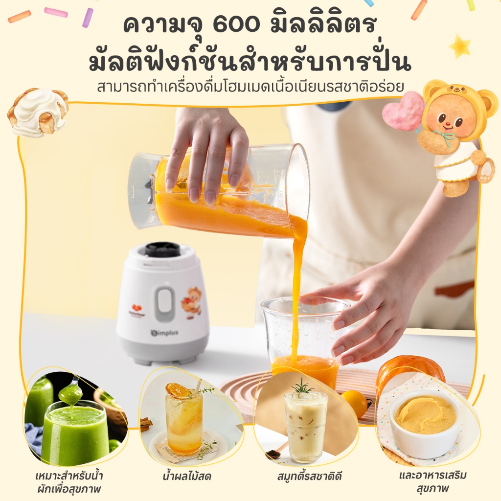 Simplus Blender เครื่องปั่นอเนกประสงค์ ใบมีดสแตนเลส ความจุใหญ่ 600ML LLJH004