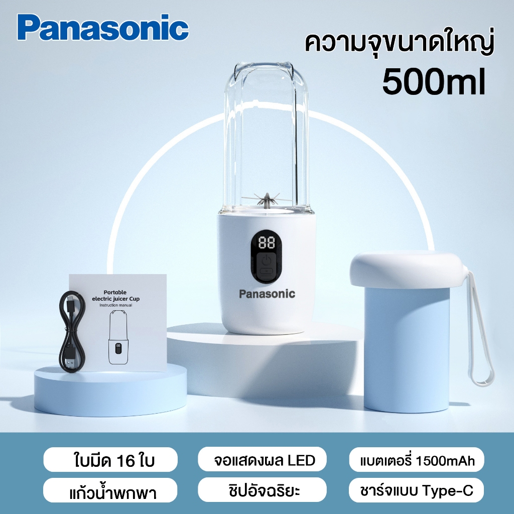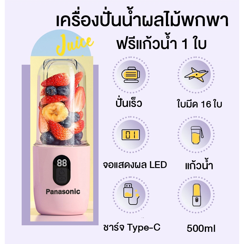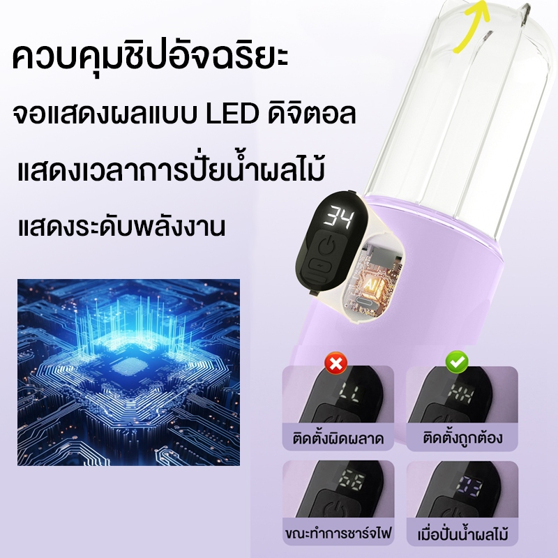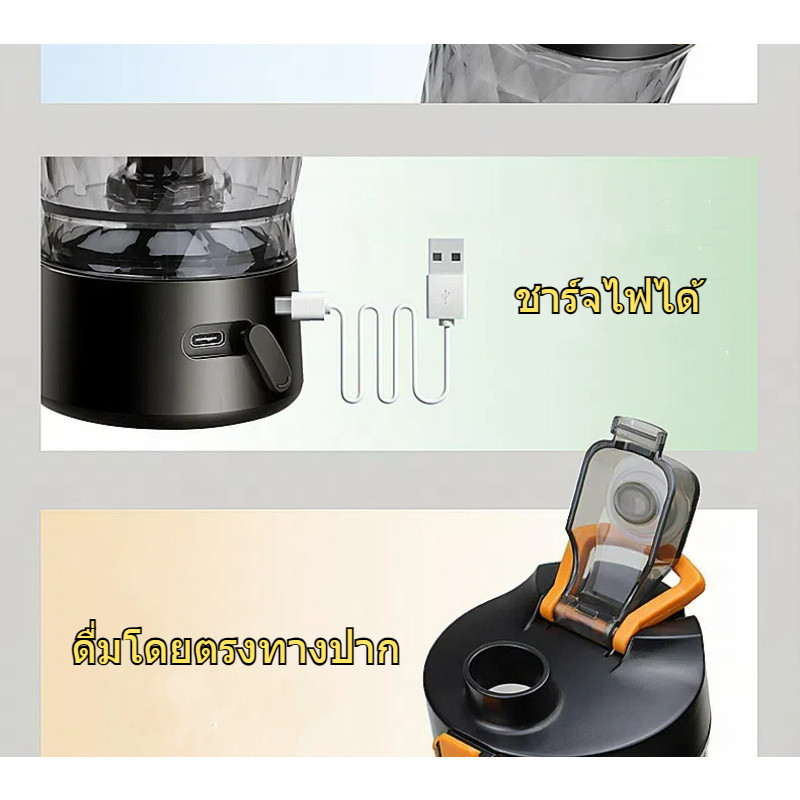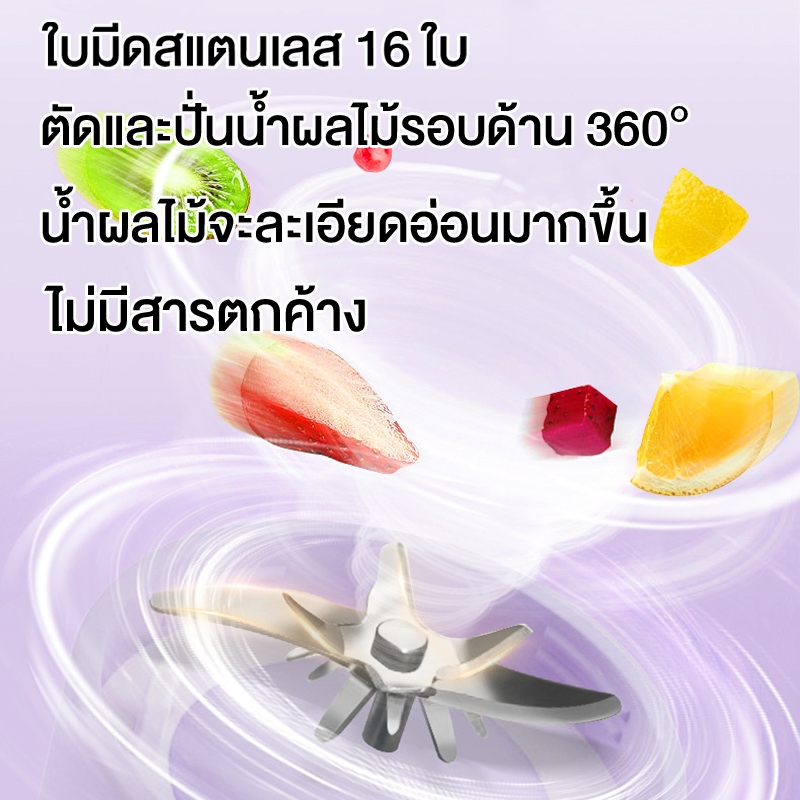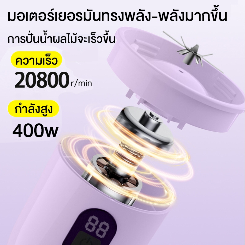 ปั่นน้ำผลไม้ กำลังไฟ 400W ความจุด 500ML แบตเตอรี่ 1500mAh เครื่องปั่นแบบพกพา