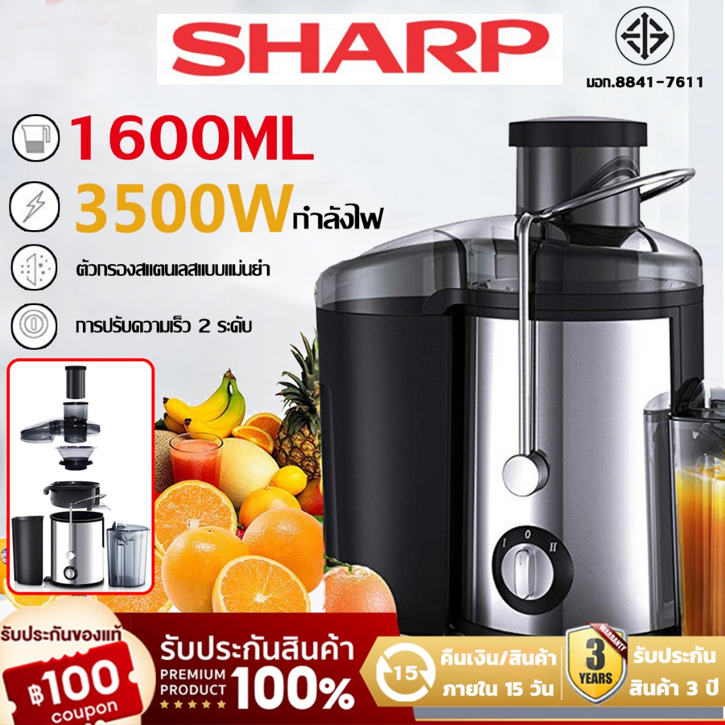 รับประกัน 5 ปี SHARP เครื่องคั้นน้ําผลไม้ เครื่องแยกกากน้ำผลไม้ 3500W เครื่องสกัดน้ำผลไม้ พร้อมแยกกากอย่างดี ใช้งานง่าย