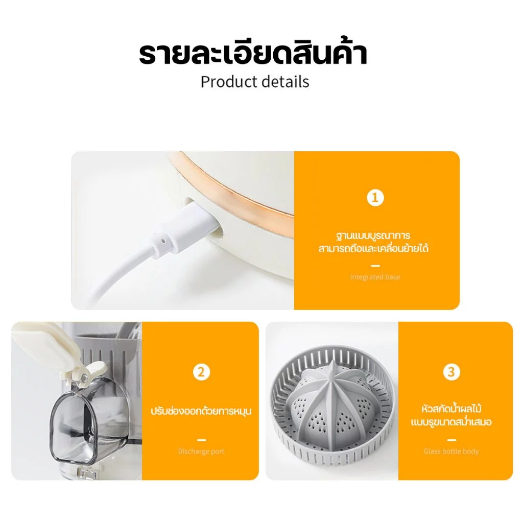 เครื่องคั้นน้ำผลไม้ แยกกาก แบบพกพา เครื่องปั่นน้ําผลไม้ ไร้สาย คั้นน้ําส้ม ที่คั้นน้ําผลไม้ ที่คั้นน้ำส้มไฟฟ้า