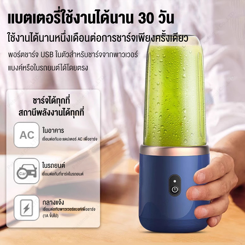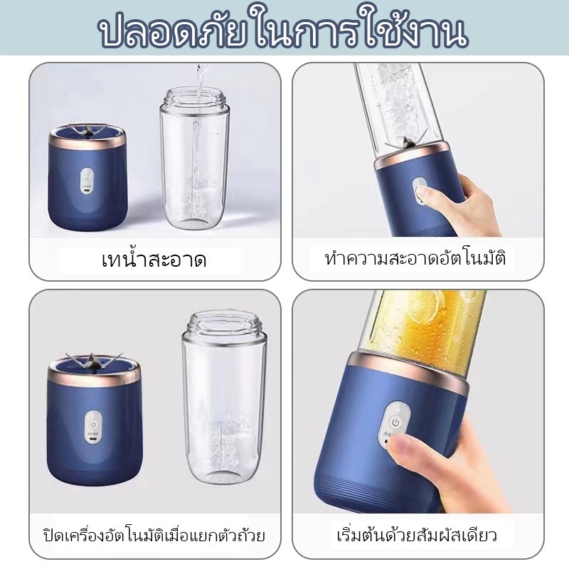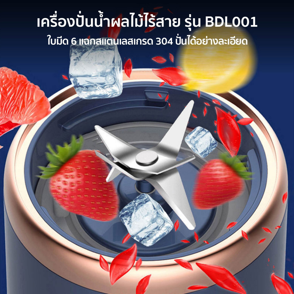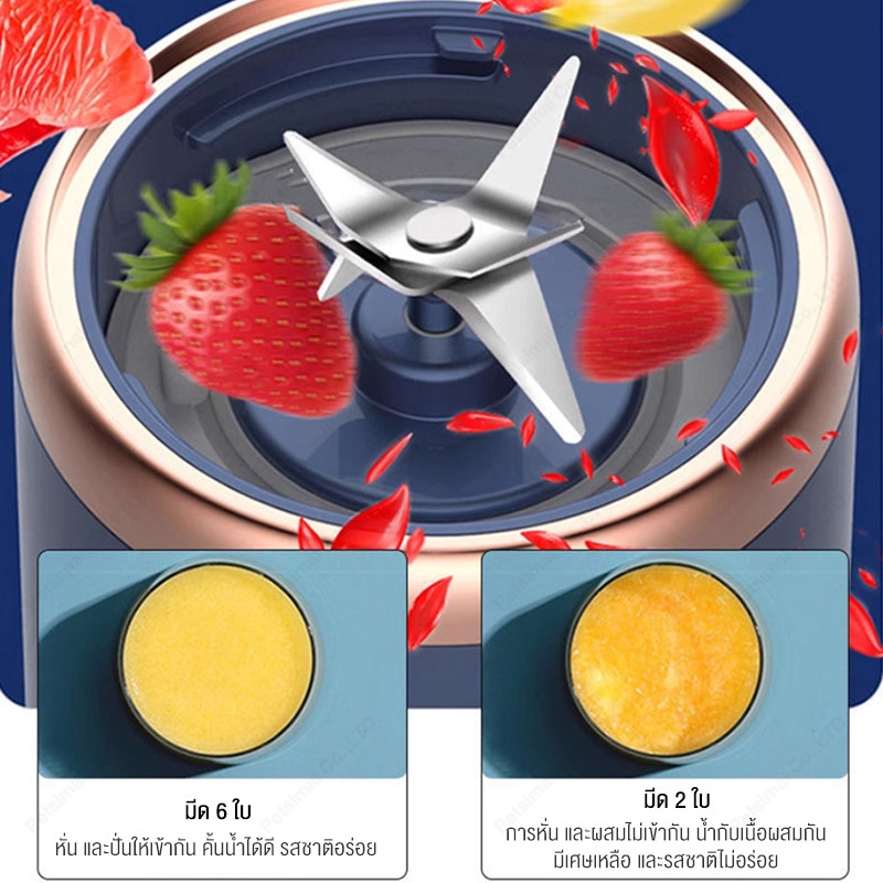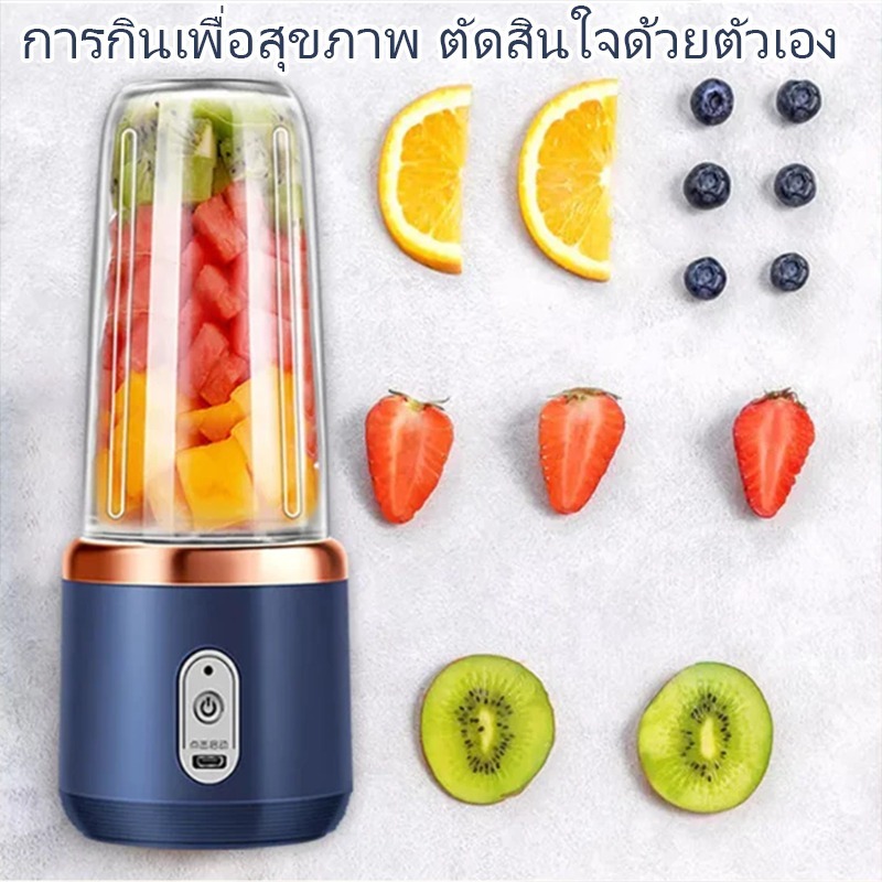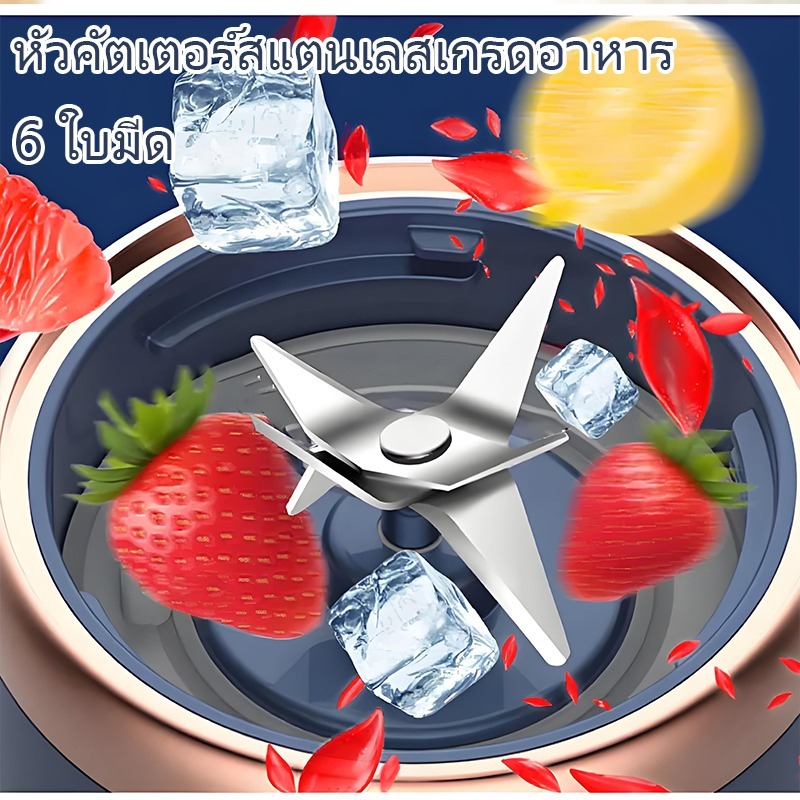 เครื่องปั่นผลไม้แบบพกพา 400ML ใบมีด 6 ใบ ปั่นน้ำแข็งได้ อเนกประสงค์ แก้วปั่นผลไม้