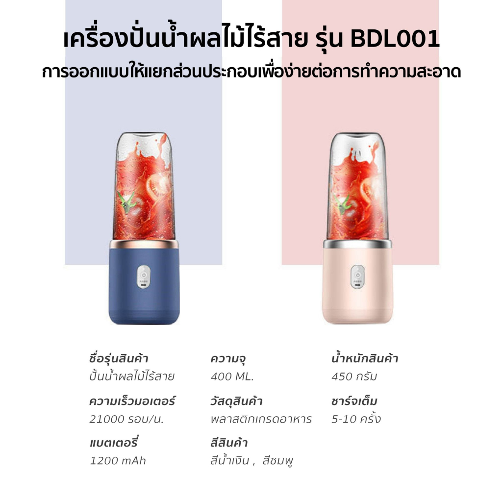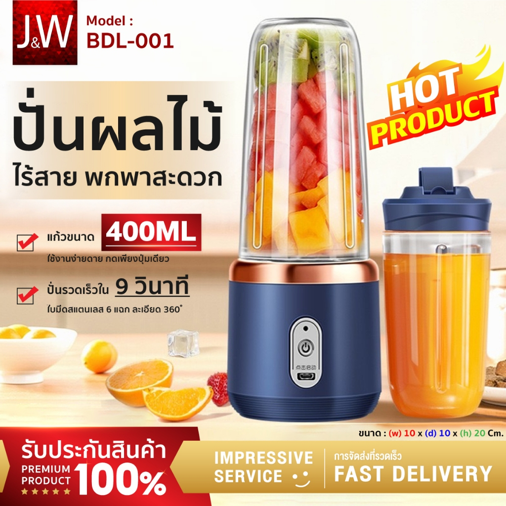 เครื่องปั่นแบบพกพา 400ML เครื่องปั่นน้ำผลไม้ คั้นน้ำผลไม้ Juicer Blender ใบมีด 6 ใบ ทำมิลค์เชค สมูทตี้ แก้วปั่นผลไม้