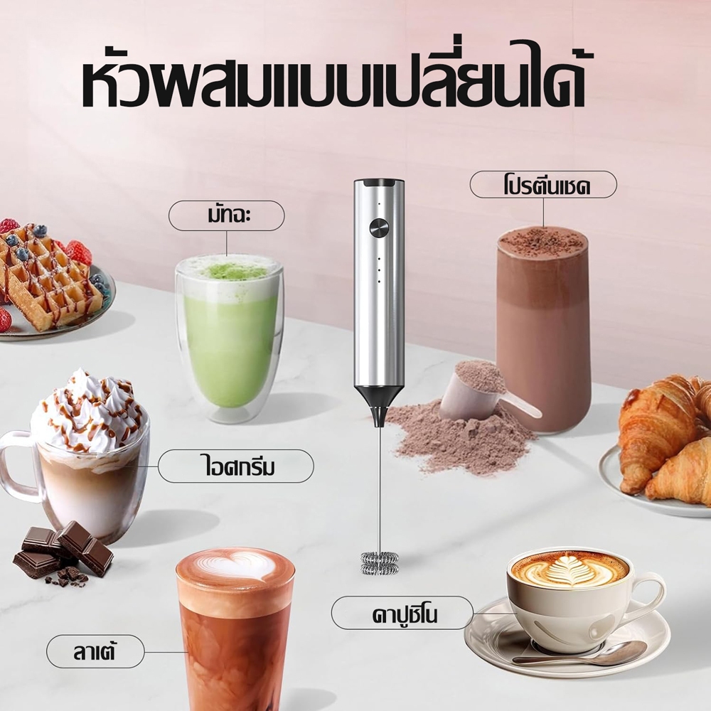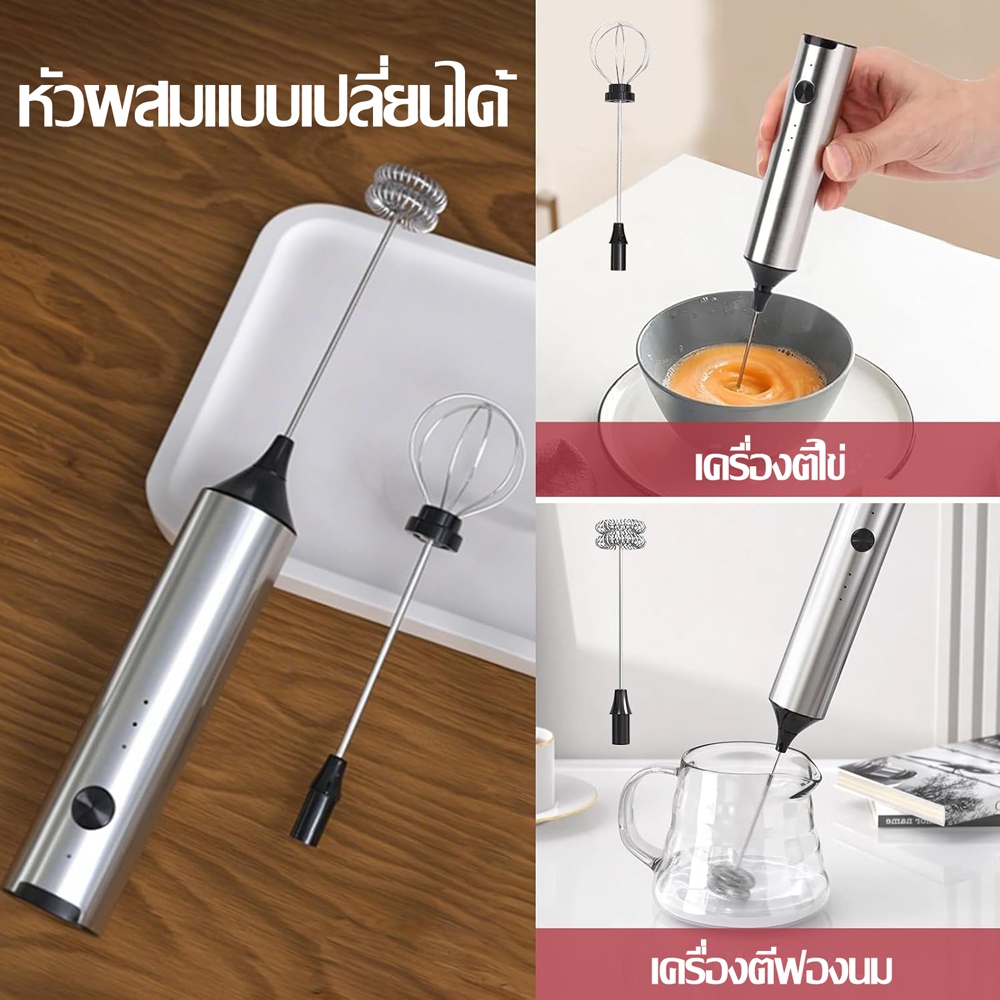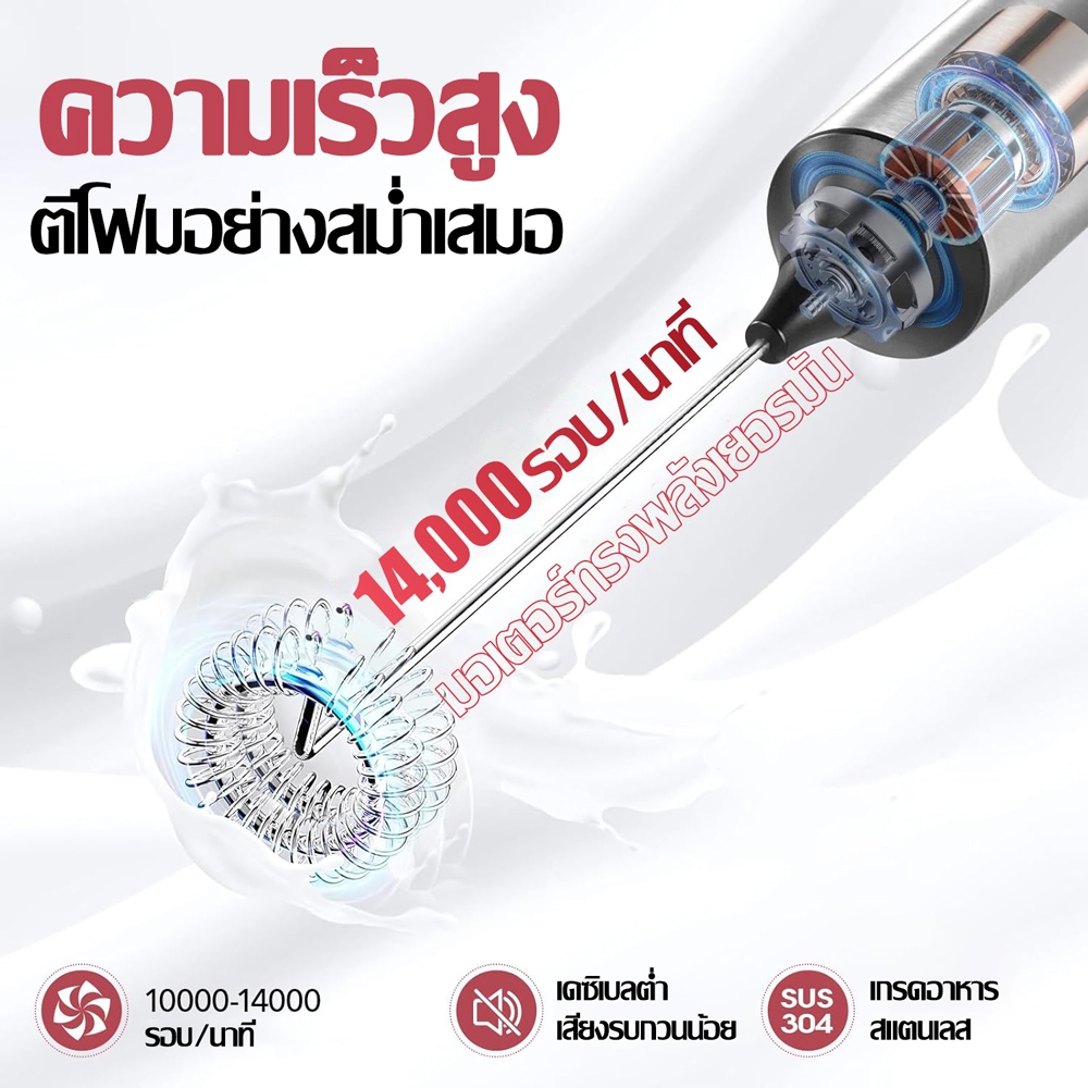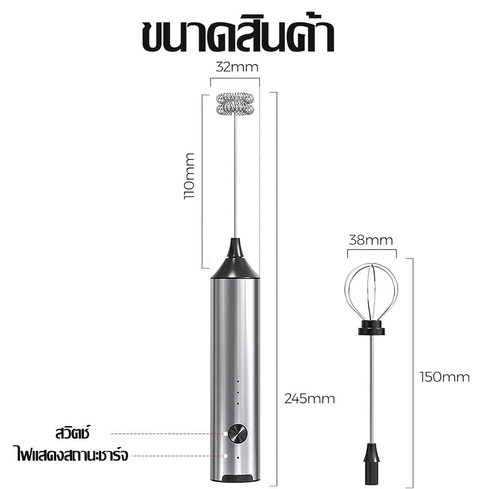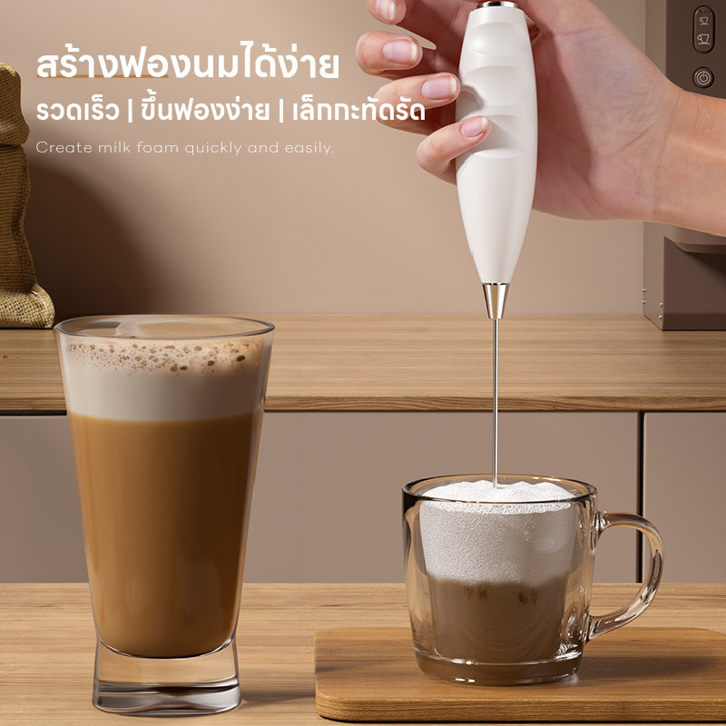 ☕ฟองนมแน่น☕เครื่องตีฟองนมไฟฟ้า เครื่องตีฟองนมและตีไข่ไฟฟ้า ชาร์จ USB ใช้งานต่อเนื่อง เครื่องตีฟองนม