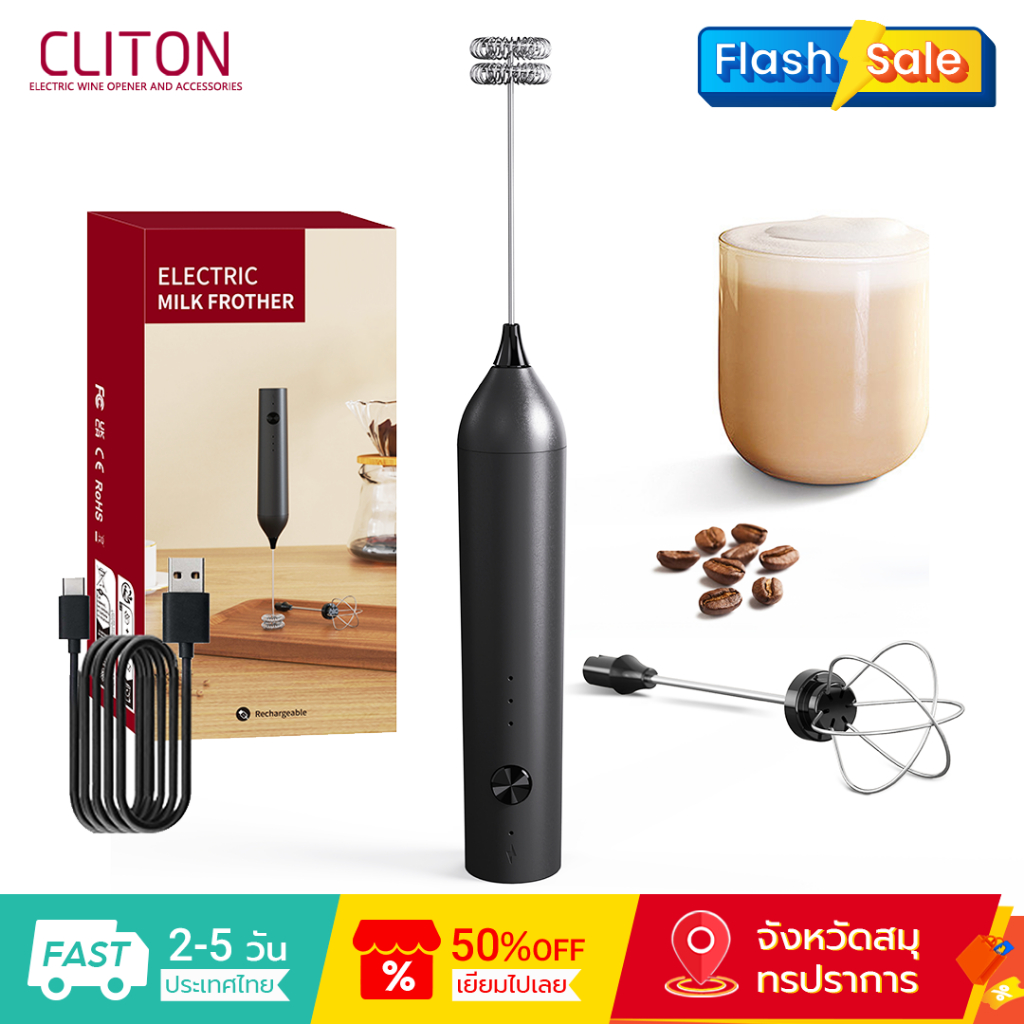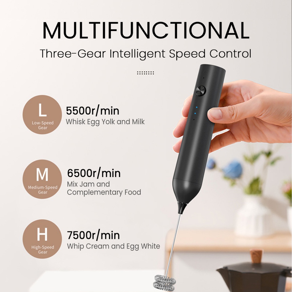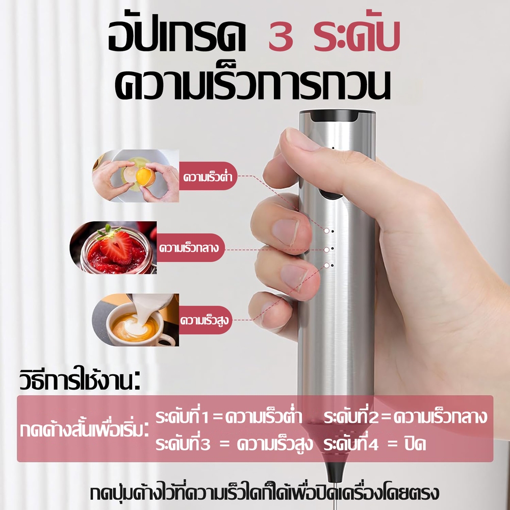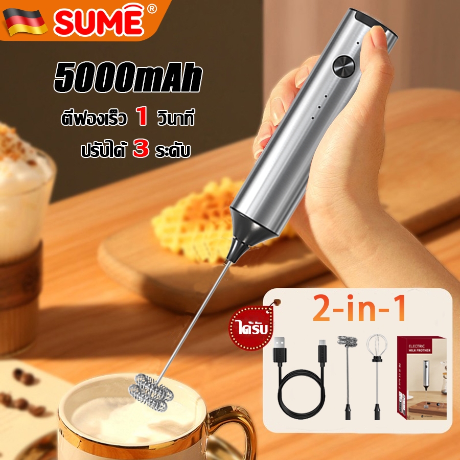 ☕ฟองนมแน่น☕เครื่องตีฟองนมไฟฟ้า เครื่องตีฟองนมและตีไข่ไฟฟ้า ชาร์จ USB ใช้งานต่อเนื่อง เครื่องตีฟองนม