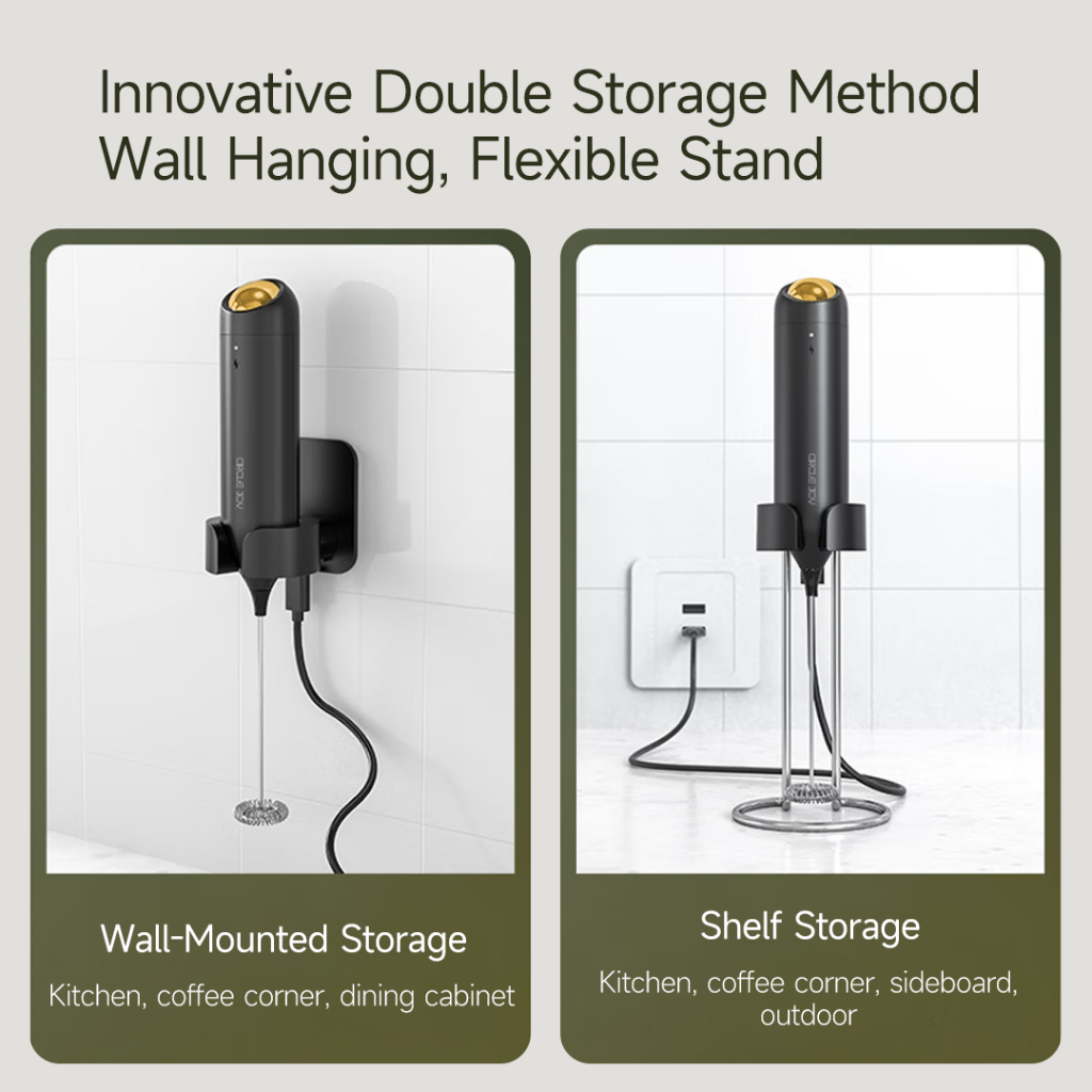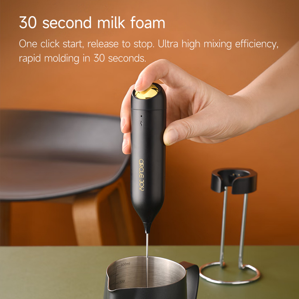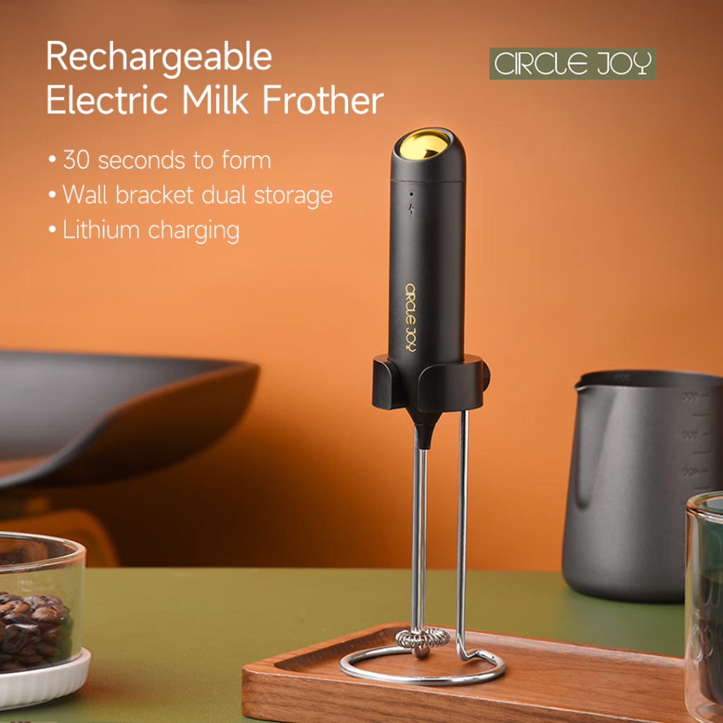 Circle Joy เครื่องตีฟองนมไฟฟ้าแบบชาร์จไฟได้พร้อมขายึดเครื่องตีเครื่องตีโฟมสําหรับกาแฟ,คาปูชิโน่,ลาเต้,มัทฉะ,ช็อกโกแลตร้อน,เครื่องผสมเครื่องดื่มขนาดเล็ก