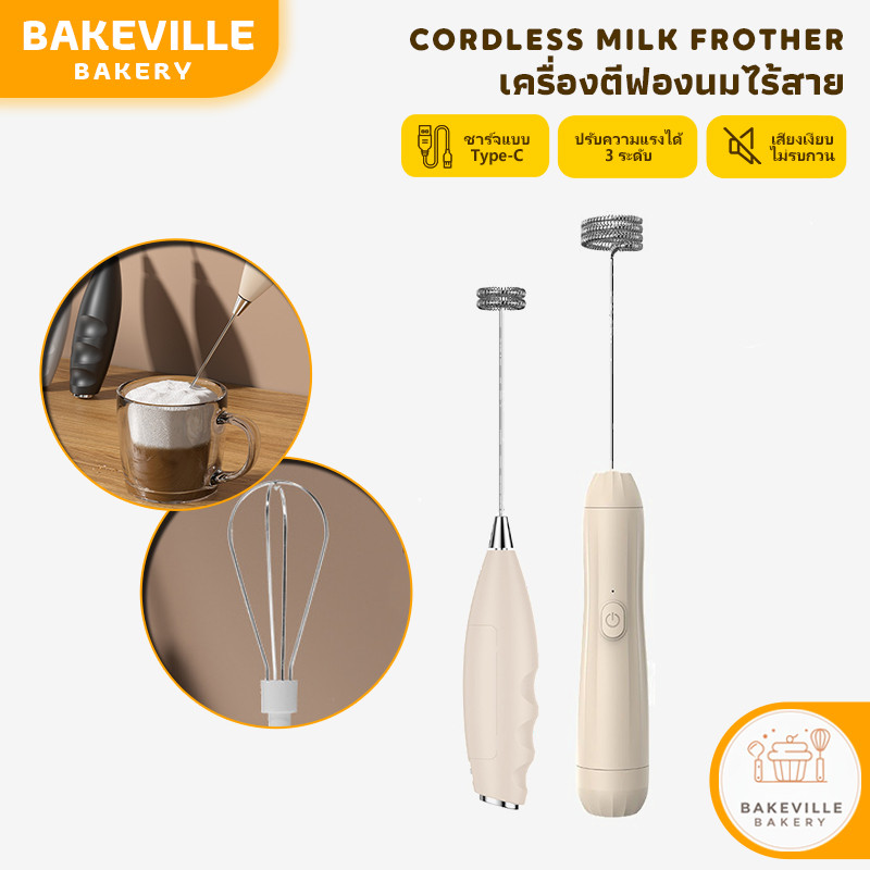 BAKEVille พร้อมส่ง เครื่องตีฟองนมไฟฟ้าไร้สาย ที่ตีไข่ เครื่องตีไข่ ปรับได้ 3 ระดับ ชาร์จType-C