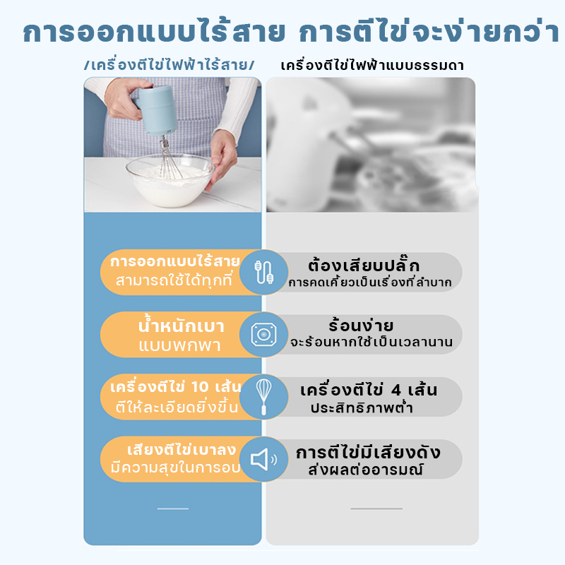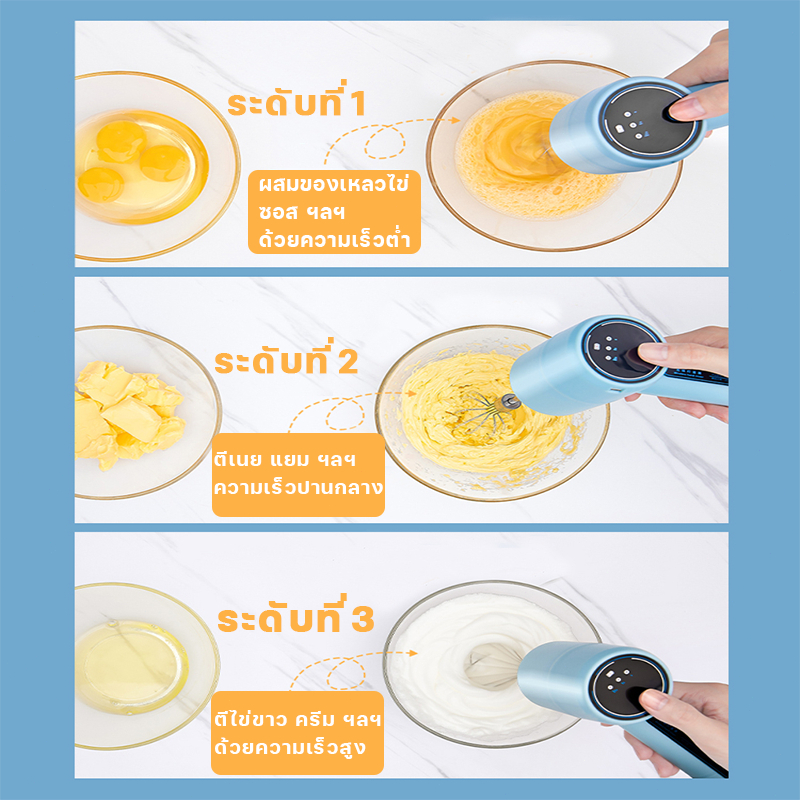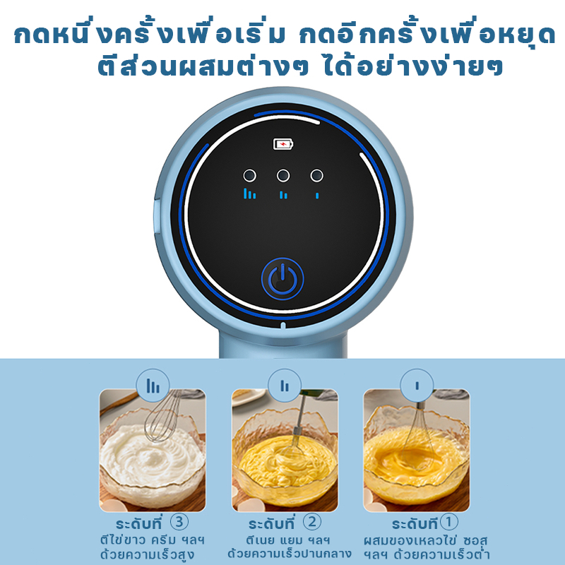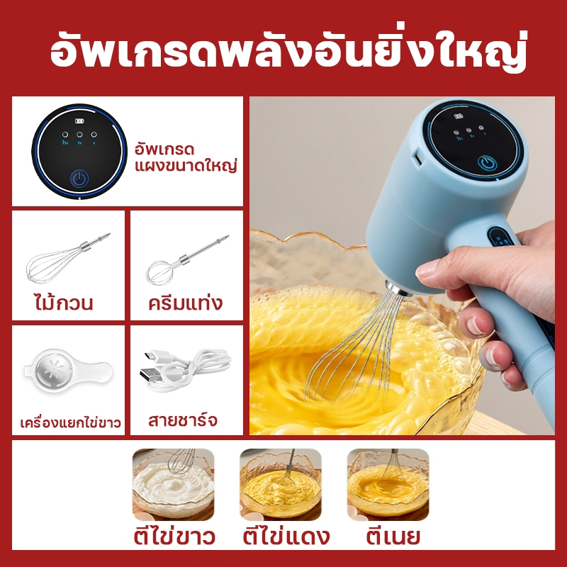 【รับประกัน 3ปี】เครื่องปั่นผสมแป้งไฟฟ้า เครื่องตีไข่ไร้สาย เครื่องตีไข่ วิปครีม ผสมอาหาร Egg Mixers USB