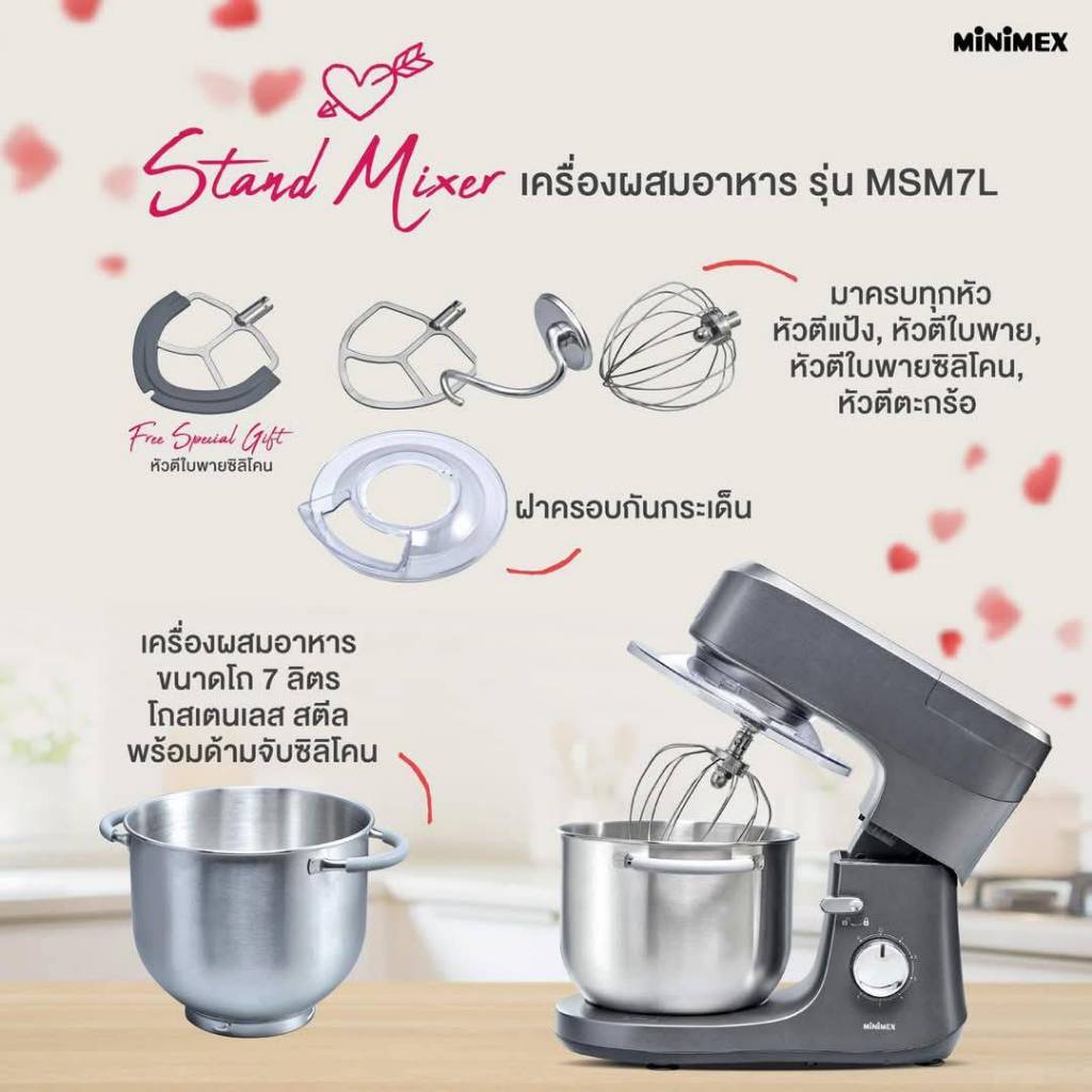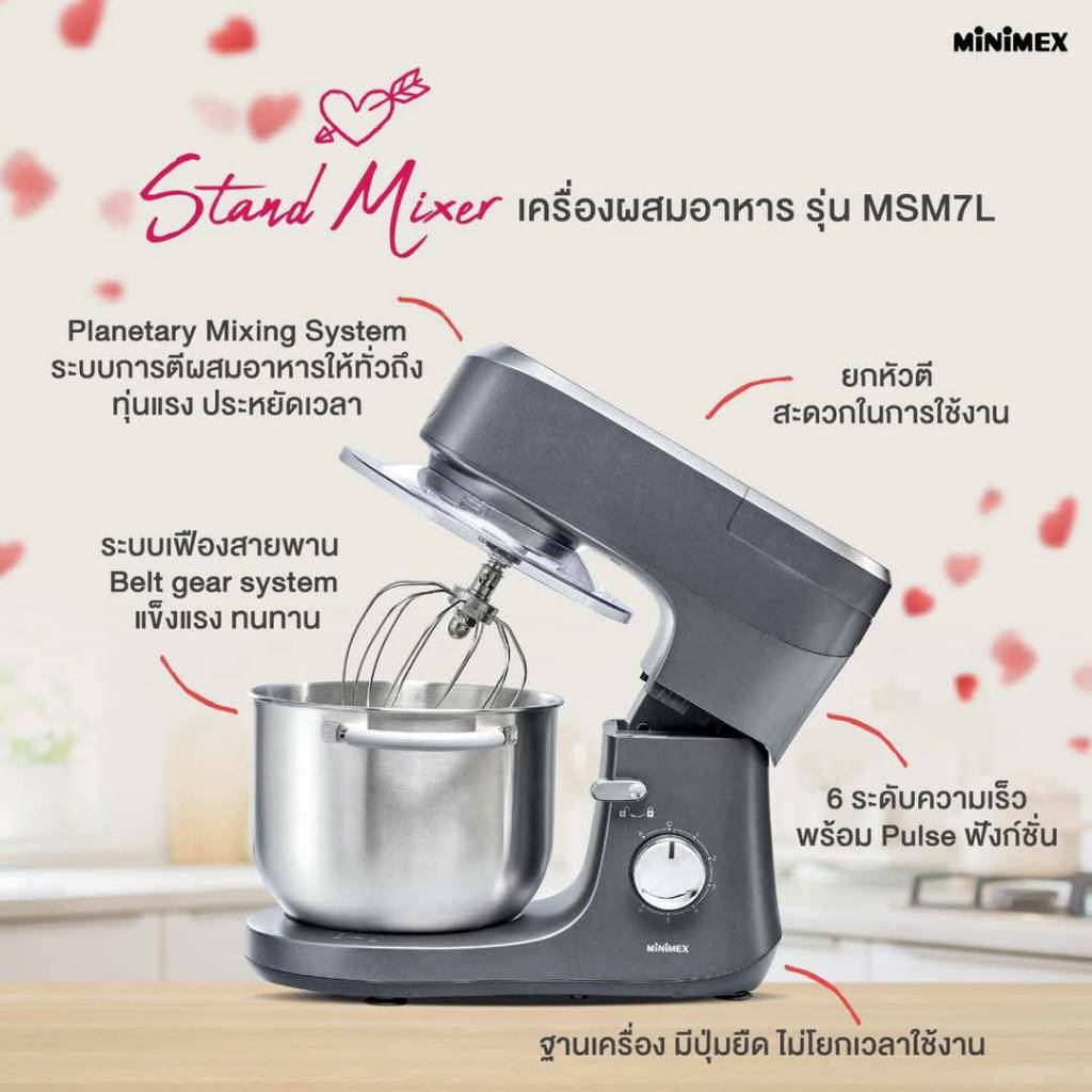 [NEW] MiniMex Stand Mixer เครื่องผสมอาหาร รุ่น MSM7L ความจุ 7 ลิตร พร้อมหัวตี 4 แบบ (รับประกัน 2 ปี)