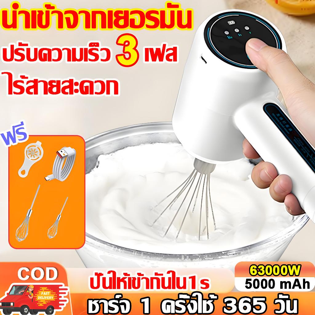 ?รับประกัน 10ปี?เครื่องตีไข่ ไฟฟ้า 63000W หัวตี2แบบ ปรับความเร็วได้3ระดับ ที่ตีฟองนม เครื่องตี USB เครื่องตีวิปครีม