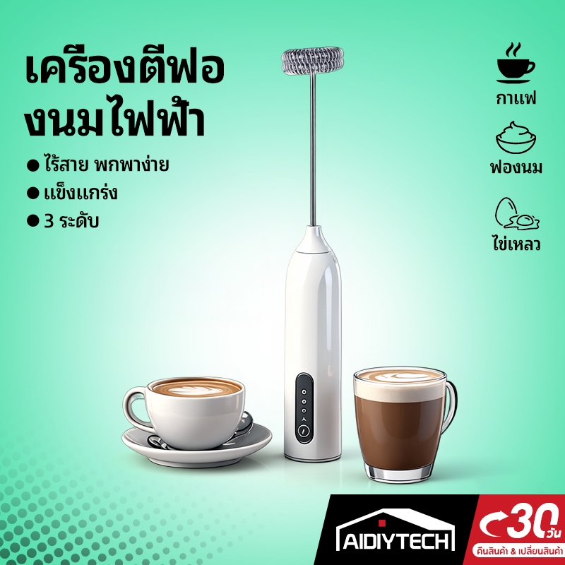 AIDIYTECH เครื่องตีฟองนมและตีไข่ 3 ความเร็ว 2 หัว (ที่ตีฟองนม/ที่ตีไข่) ใช้งานขณะชาร์จไฟได้
