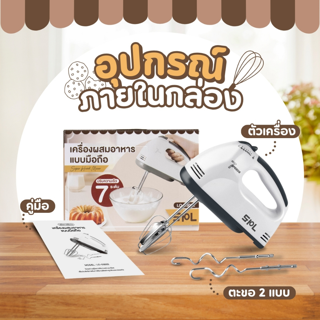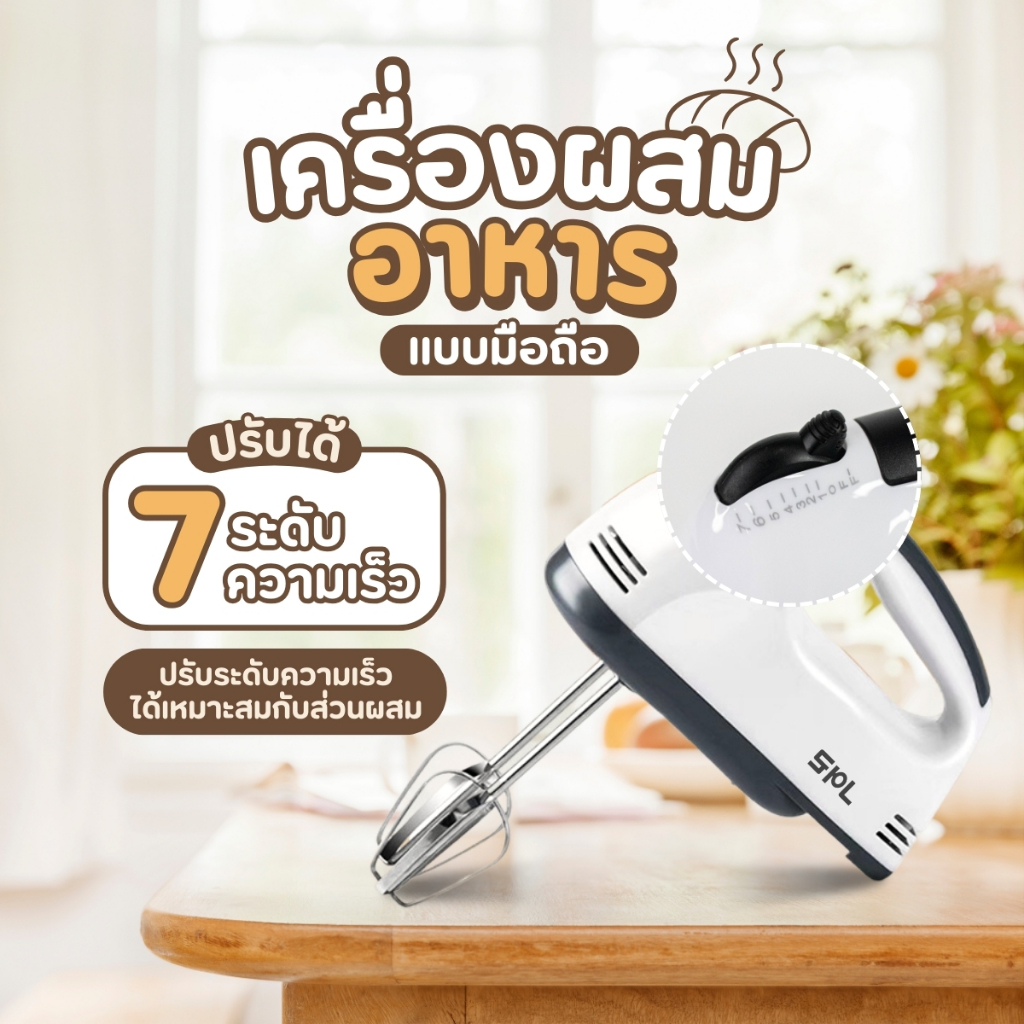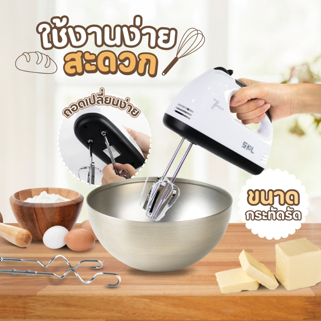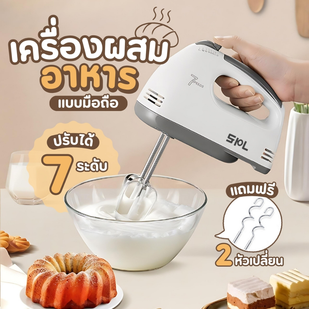 เครื่องผสมแป้งไฟฟ้า เครื่องตีไข่ วิปครีม รุ่น 7 สปีด เครื่องปั่น เครื่องตีไข่มือถือ ยี่ห้อSPL เครื่องผสมอาหารแบบมือถือ