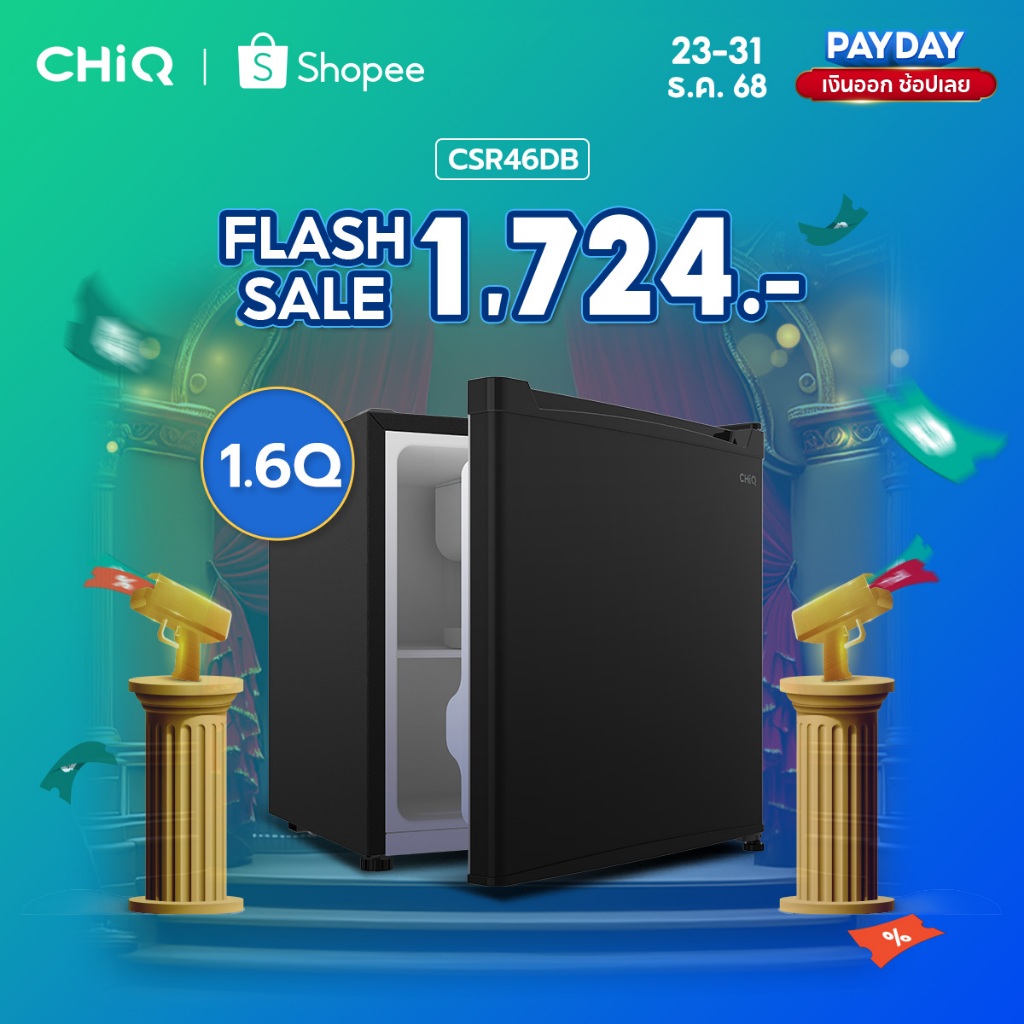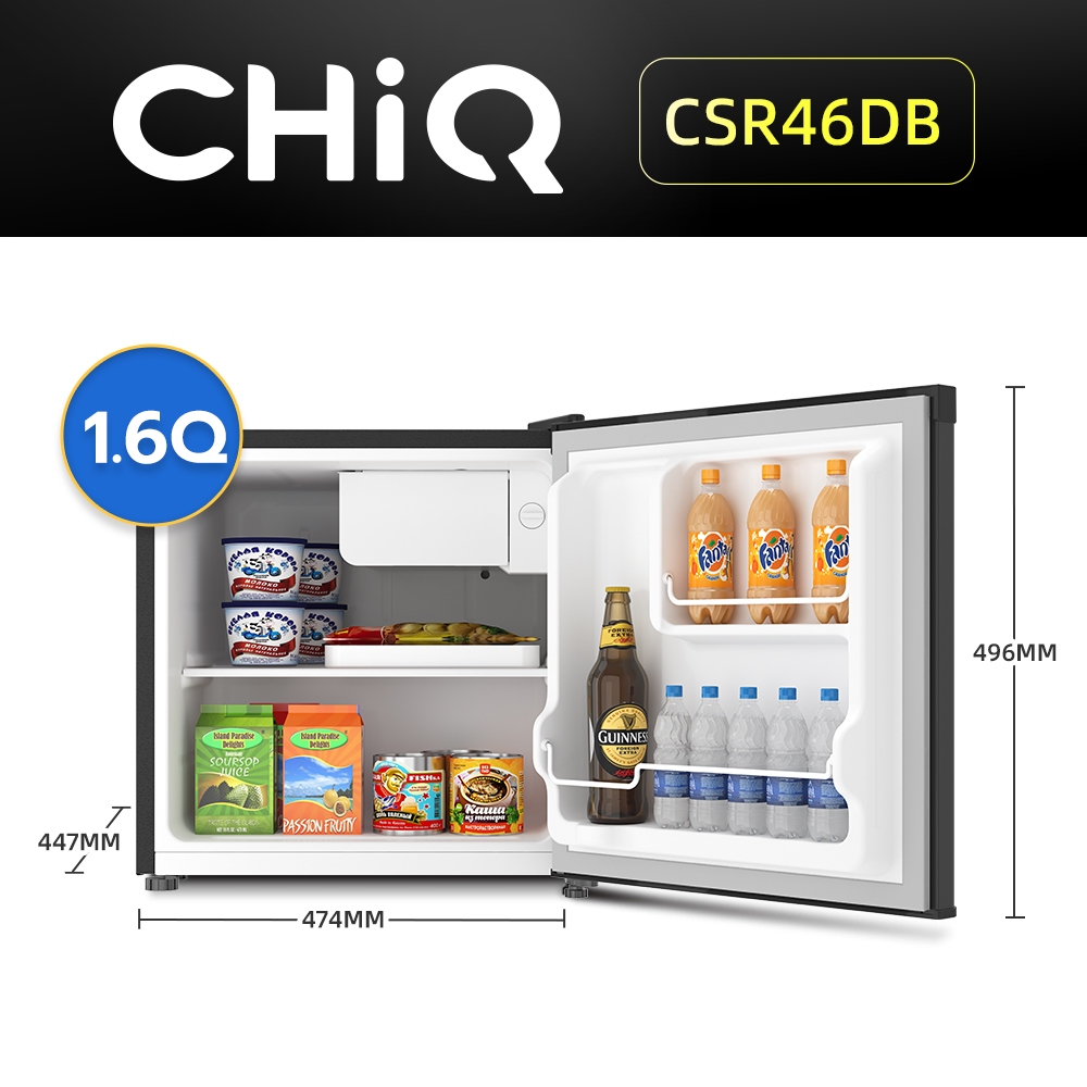 CHiQ ตู้เย็นขนาดเล็กประตูเดียวขนาด 1.6Q รุ่น CSR46DB เสียงรบกวนเบา กินไฟน้อย ตู้เย็นมินิ
