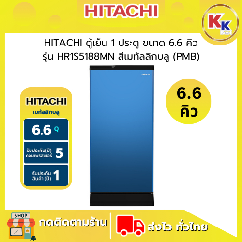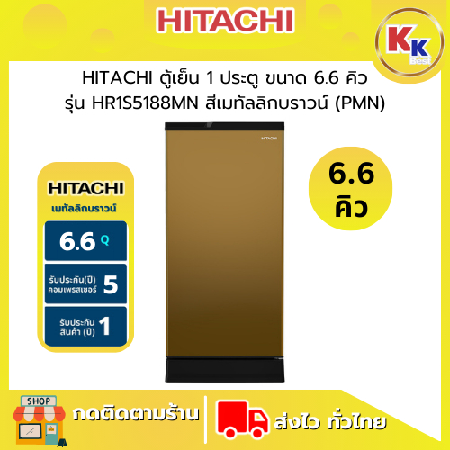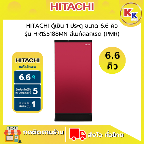 ?ราคาพิเศษ พร้อมคูปองส่วนลด? HITACHI ตู้เย็น 1 ประตู ขนาด 6.6 คิว ( 5 สี ) | 1 Door รุ่น HR1S5188MN | ตู้เย็นราคาถูก