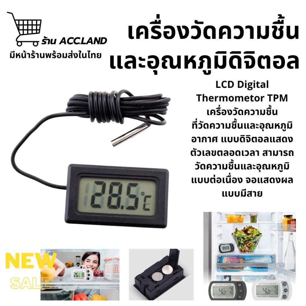 [พร้อมส่ง] เครื่องวัดอุณหภูมิ แบบพกพา กันน้ำสําหรับตู้เย็น ตู้แช่ LCD Digital วัดความชื้น วัดอุณหภูมิ มีถ่านพร้อมใช้