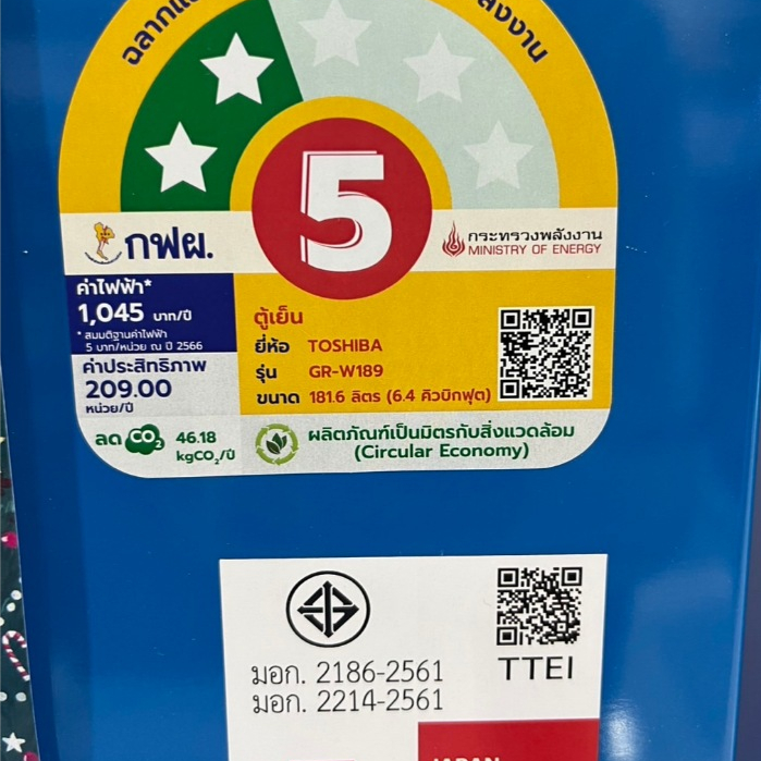 (โค้ดร้านลดเพิ่ม200บาท) TOSHIBA ตู้เย็น 1 ประตู ขนาด 6.4 คิว GR-W189