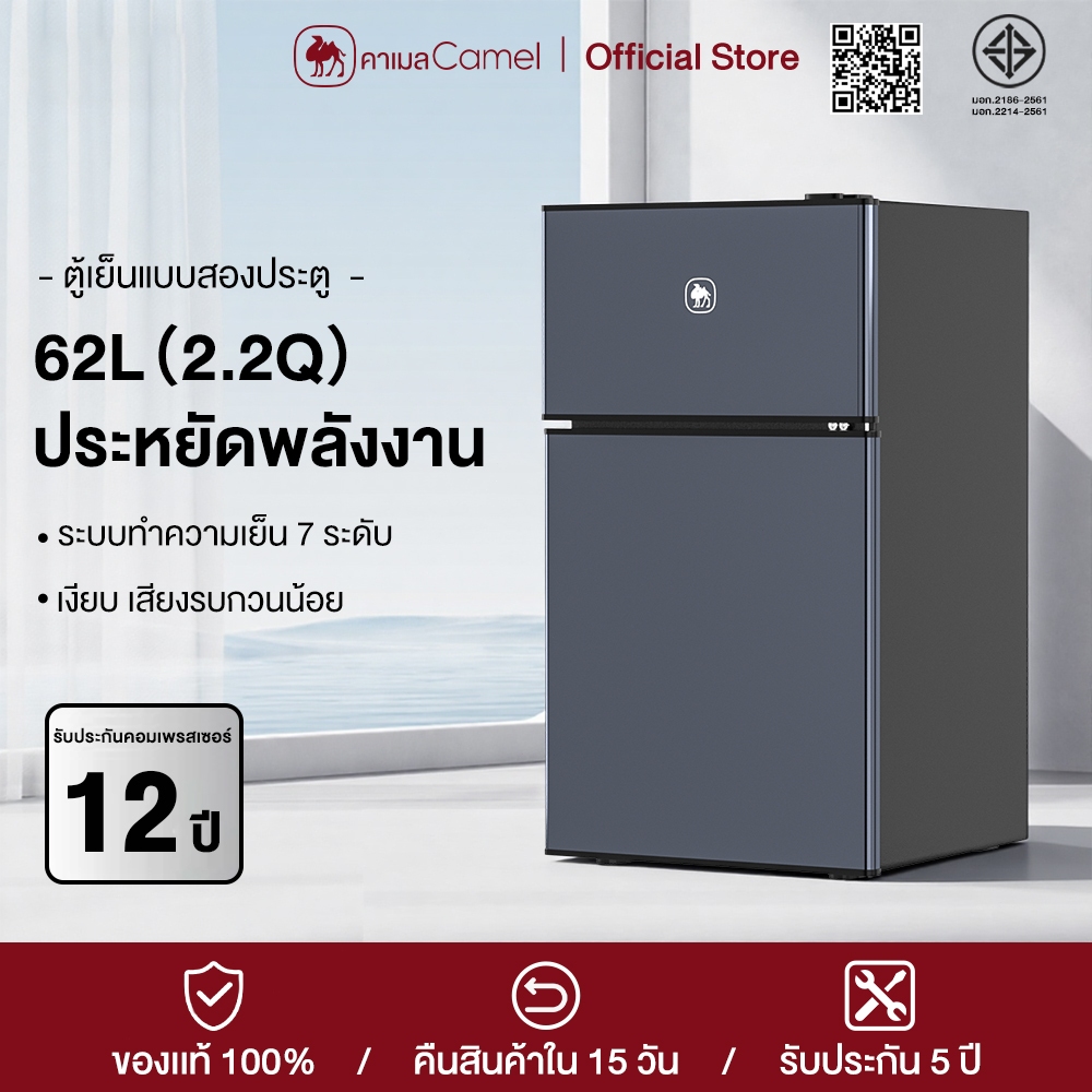 CAMEL ตู้เย็น 2 ประตู 62L/2.2Q ประหยัดไฟ เงียบ ใช้งานง่าย เหมาะสำหรับหอพักและคอนโด