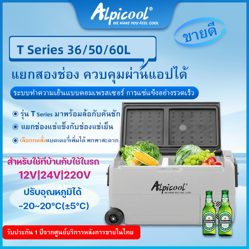 【พร้อมส่ง】Alpicool Freezer T Series 36/50/60L ตู้เย็นขนาดเล็กแยกสองช่องช่องแช่แข็งกับช่องแช่เย็น ปรับได้ -20~20°C(±5°C)