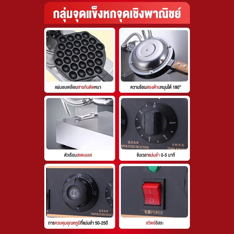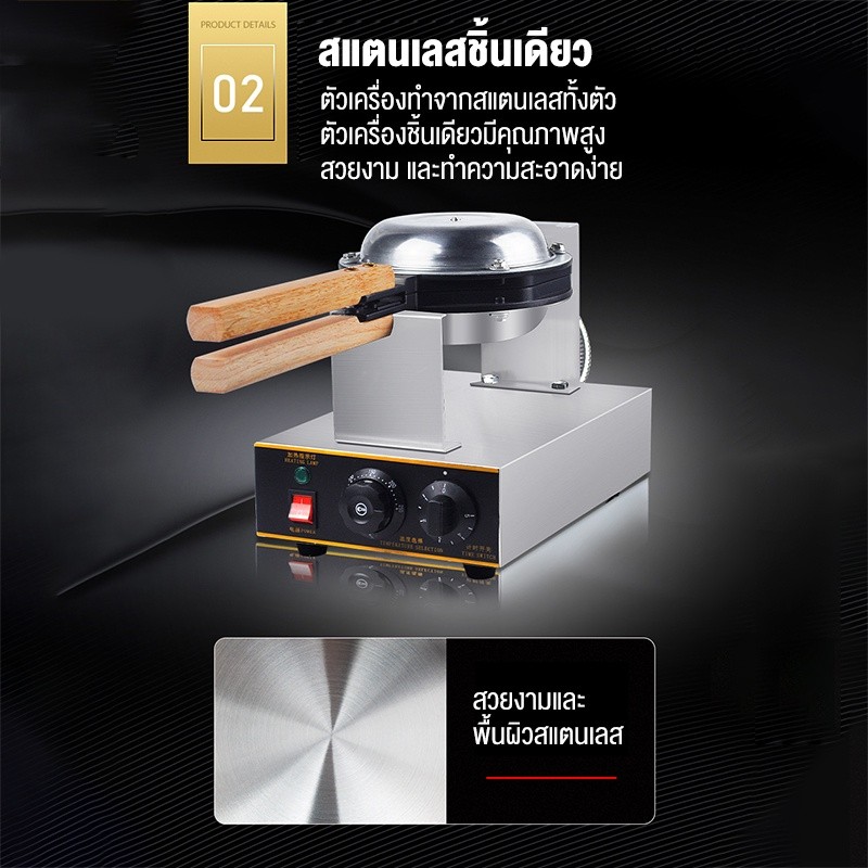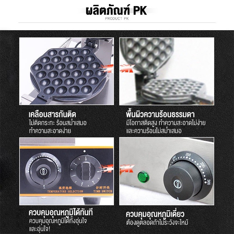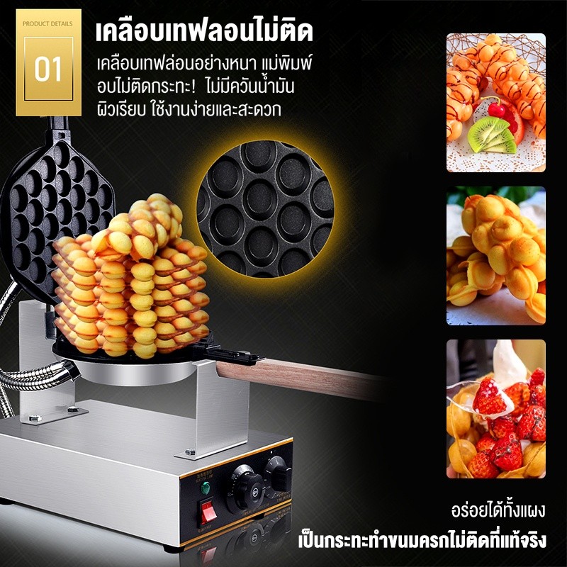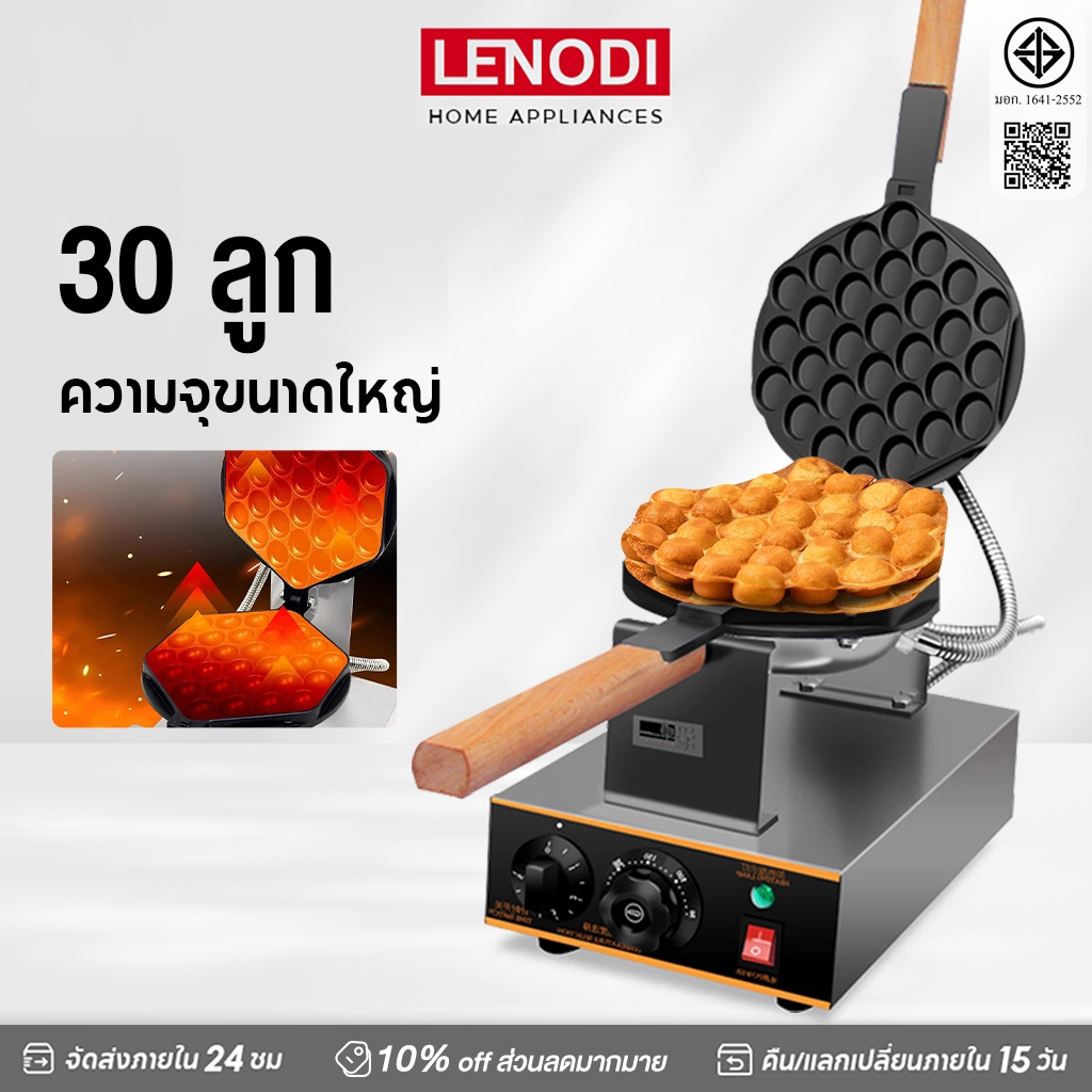 LENODI เครื่องทำวาฟเฟิล เตาวาฟเฟิล เครื่องอบวาฟเฟิล ฮ่องกง Egg Waffle make กำลังไฟ 1500W ตัวเครื่องทำจากสแตนเลส