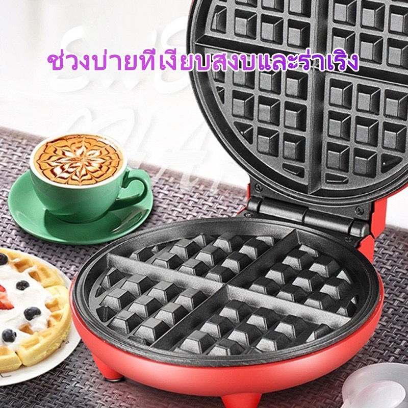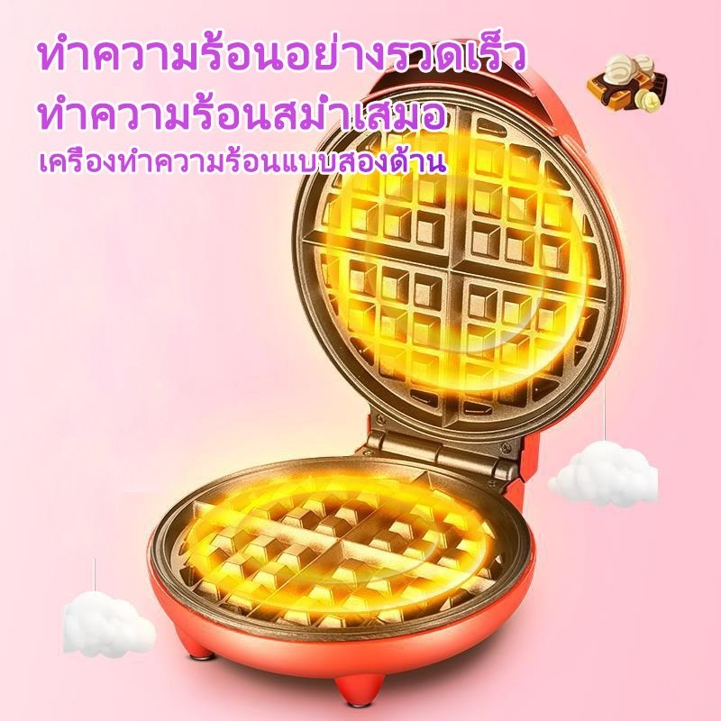 MTM เครื่องทำวาฟเฟิล กลมหนา ให้ความร้อนทั้งสองด้าน ทำอาหารเช้า วาฟเฟิลขนาดใหญ่ ในครัว เครื่องทำขนมปัง
