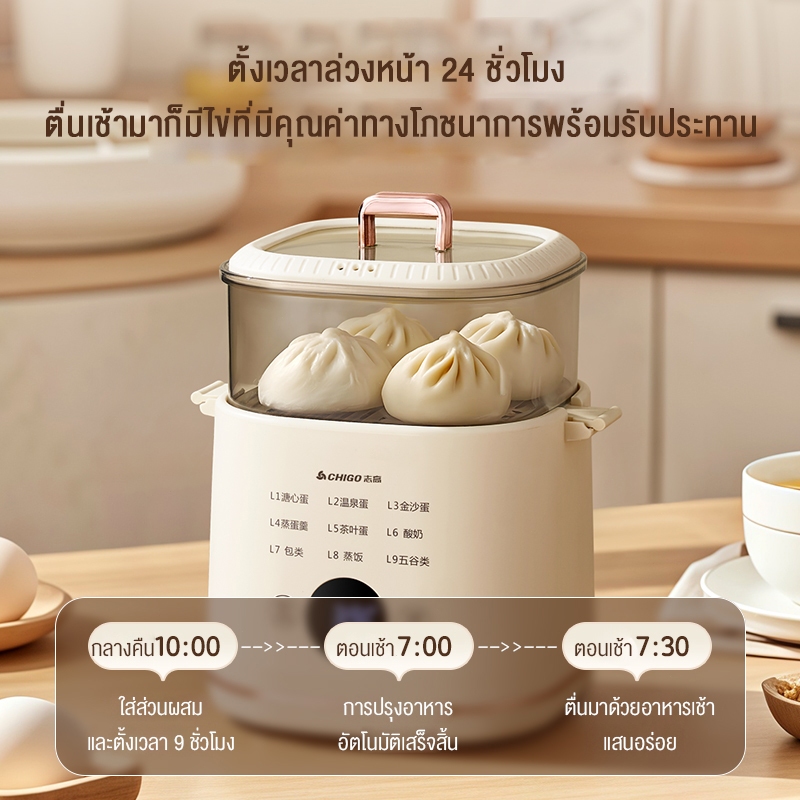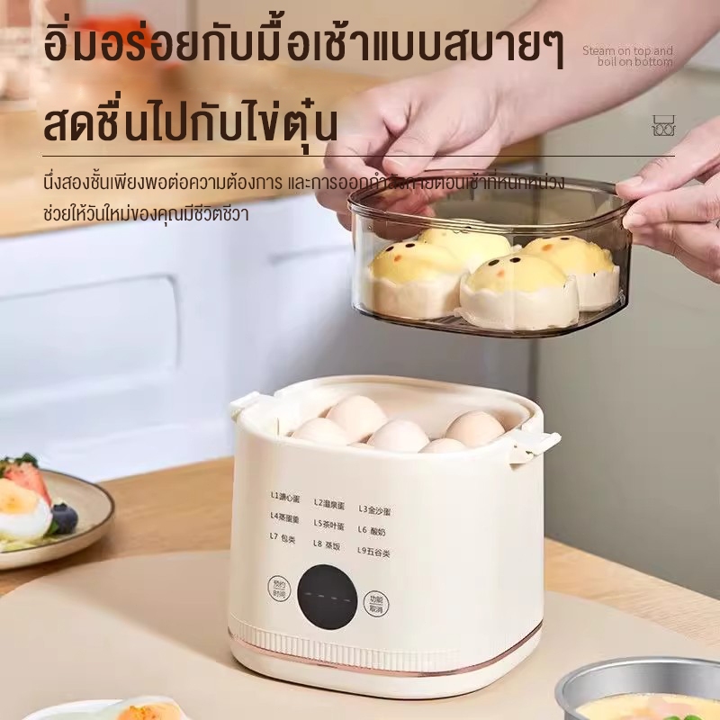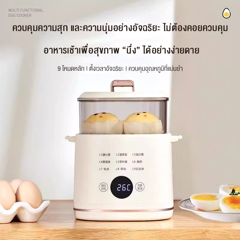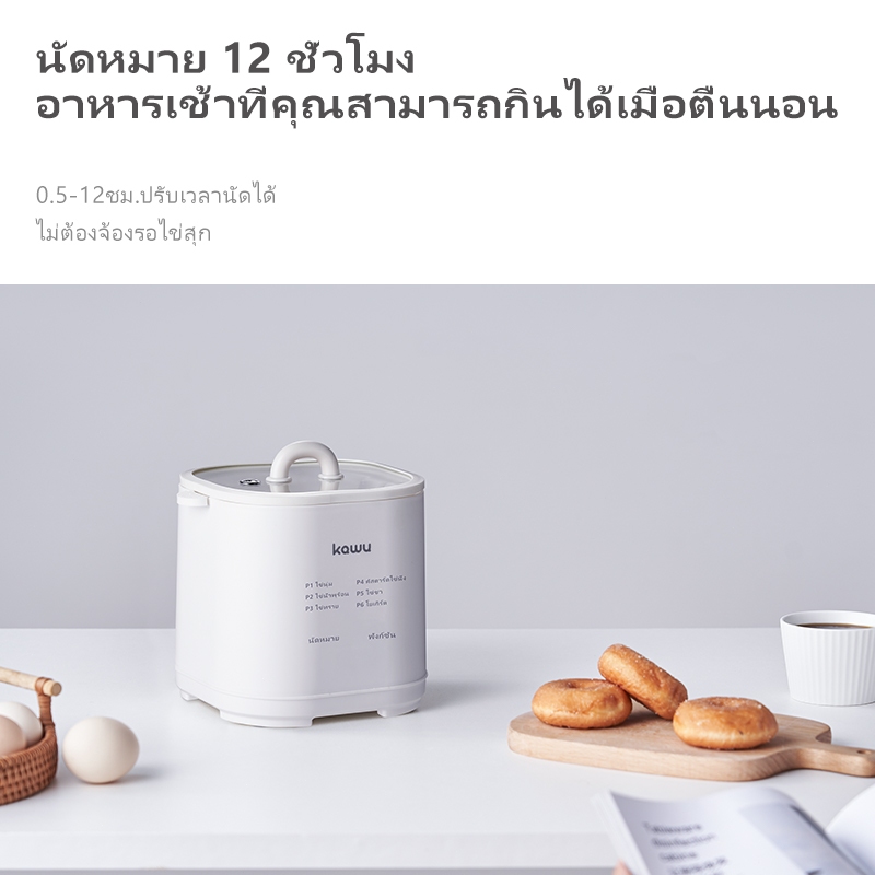 KoKuBa เครื่องต้มไข่มัลติฟังก์ชั่น ตั้งค่าเวลาล่วงหน้าได้ 24 ชั่วโมง มีหลายโหมดการทำงาน