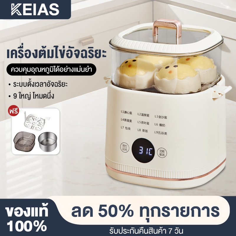 KEIAS เครื่องต้มไข่ เครื่องต้มไข่อัตโนมัติ เครื่องต้มไข่อเนกประสงค์ ใช้งานได้ง่าย ขนาดเล็ก พกพา 9in1หม้อต้มไข่